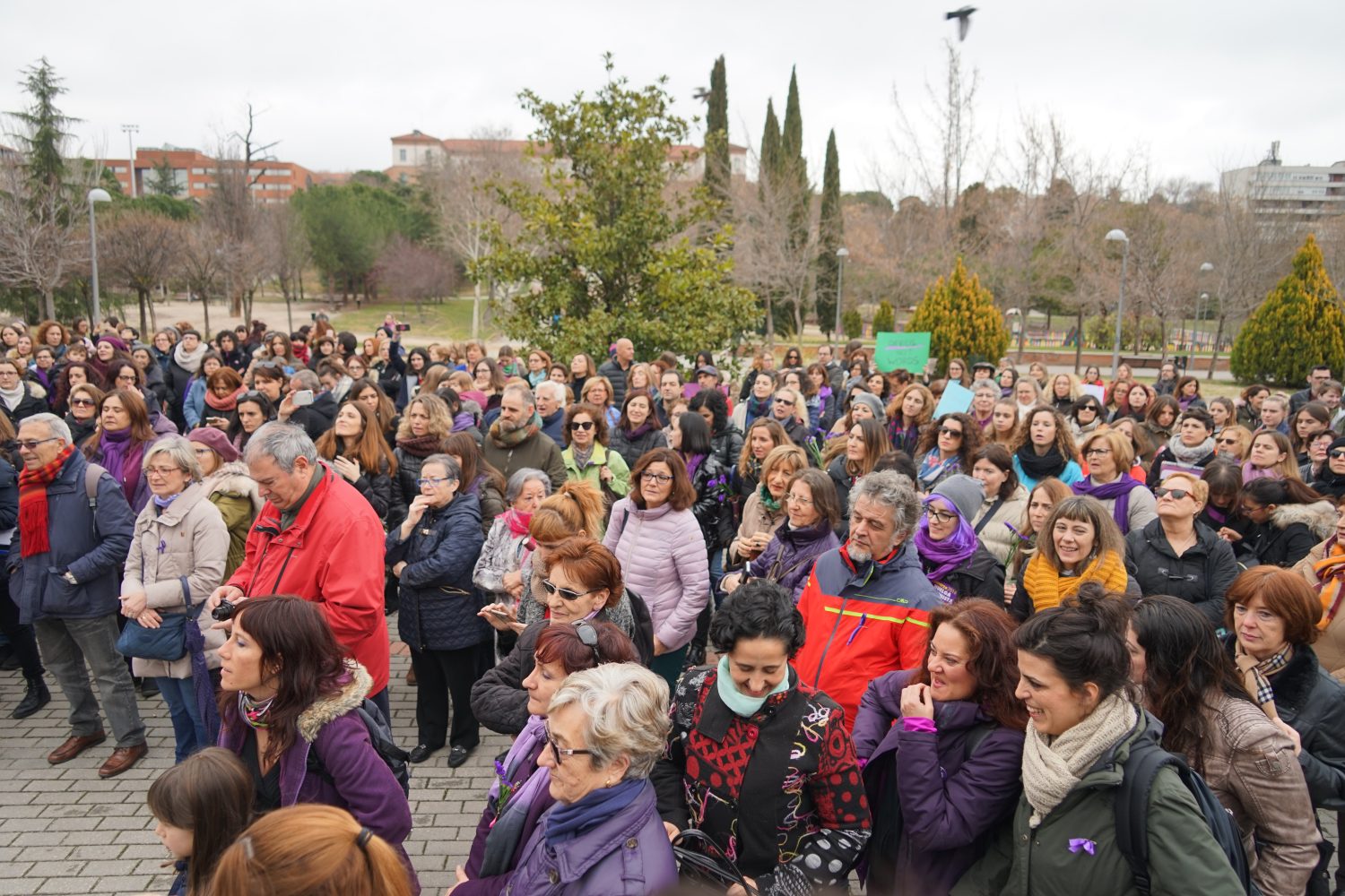 Decenas de mujeres se sumaron a la convocatoria en el parque Alfredo Kraus para leer, por relevos, el manifiesto de la Huelga Feminista.