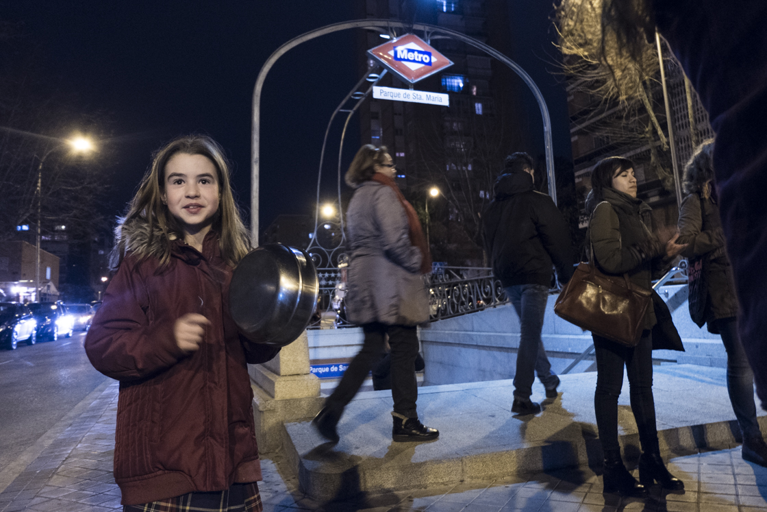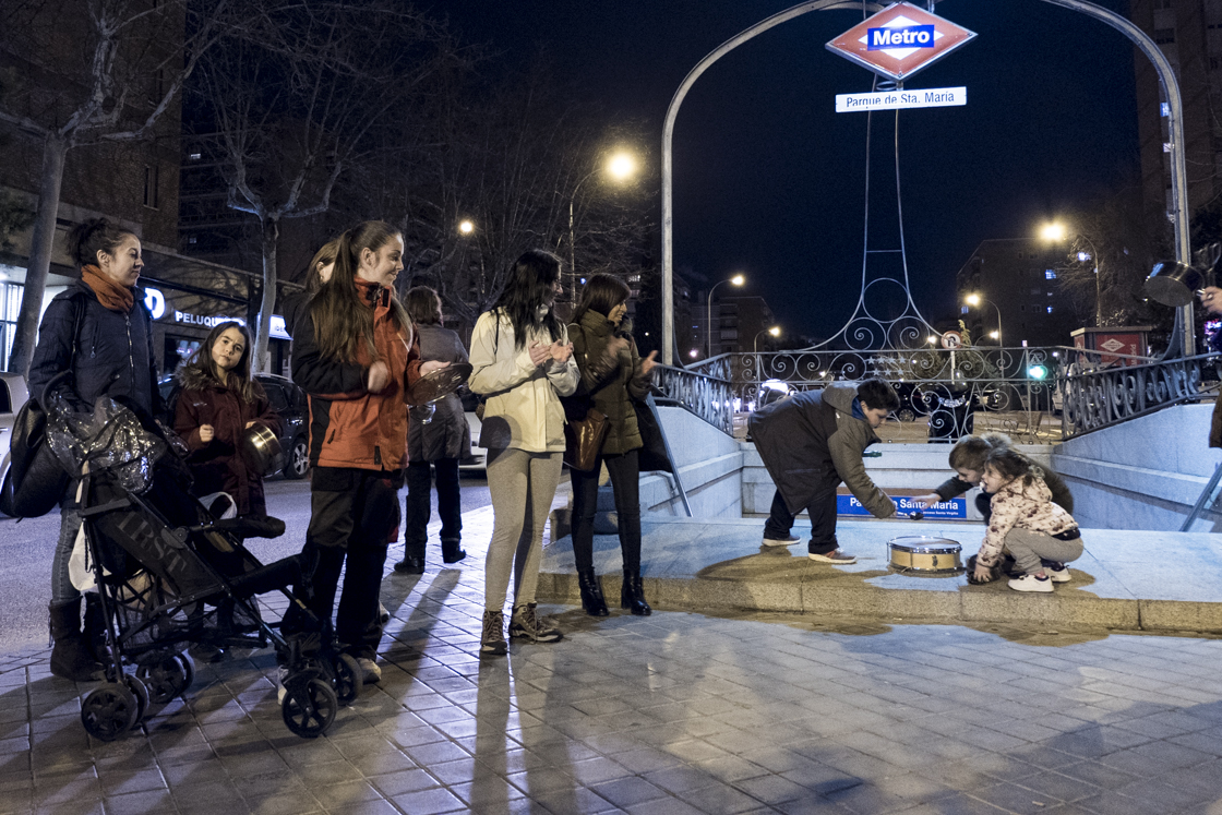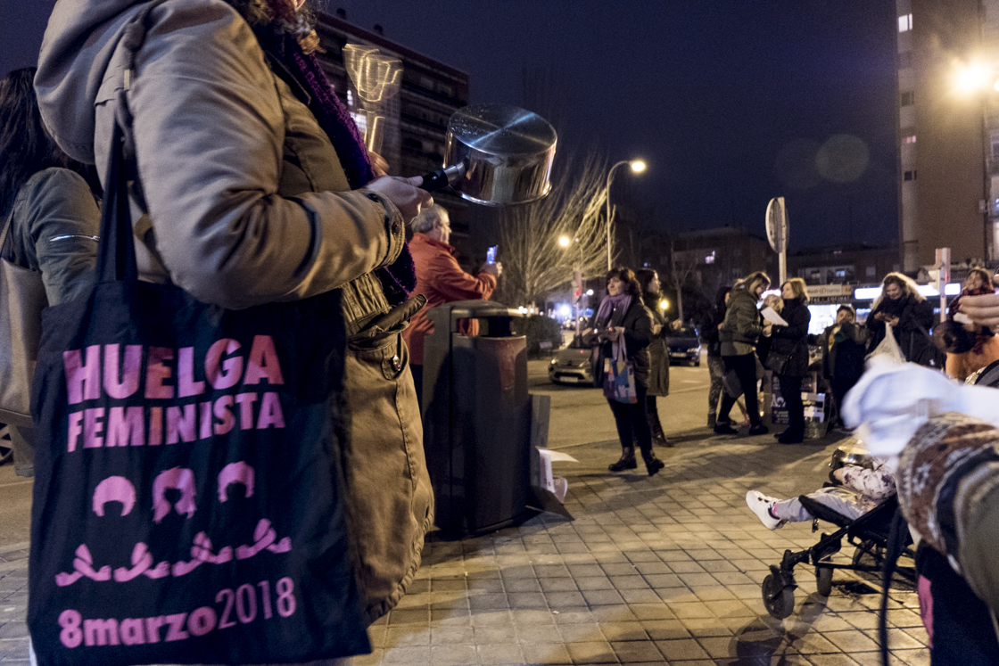 Vecinas de todas las edades dieron la bienvenida al 8 de marzo con caceroladas en los barrios de Parque de Santa María, Canillas y Manoteras.