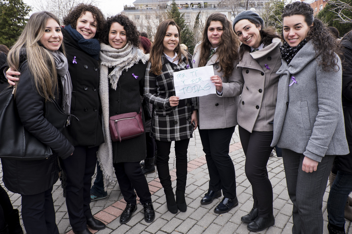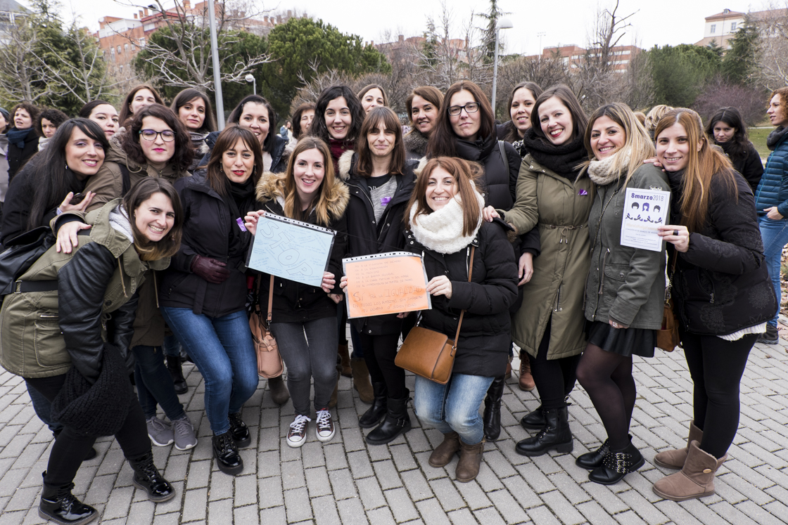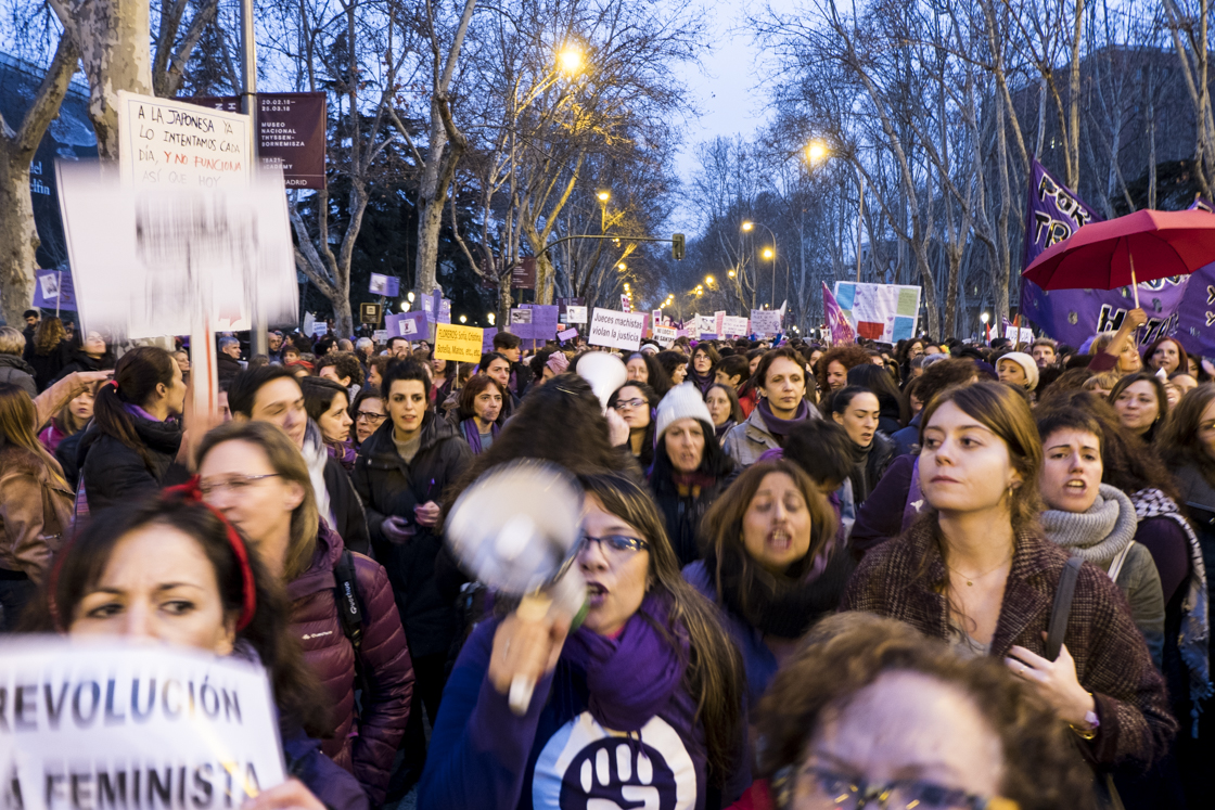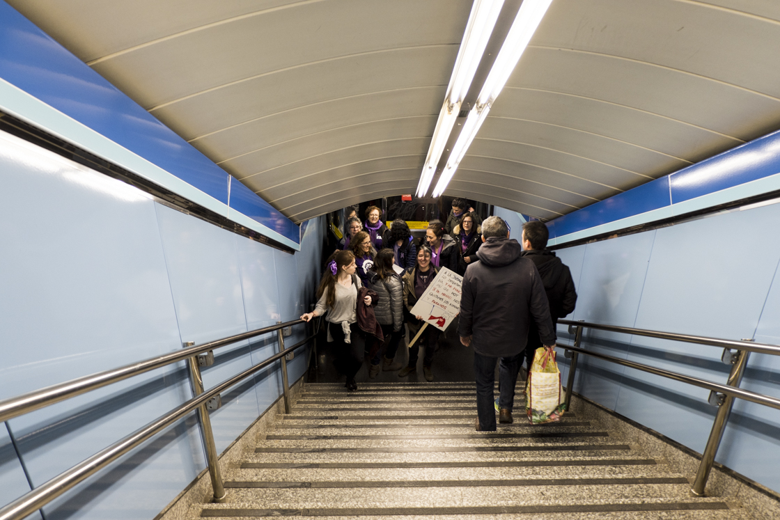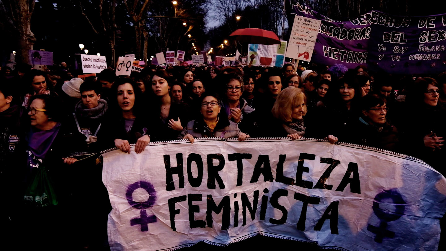Agrupadas en torno a la pancarta ‘Hortaleza feminista’, mujeres del barrio fueron y recorrieron juntas la masiva marcha por el centro de Madrid.