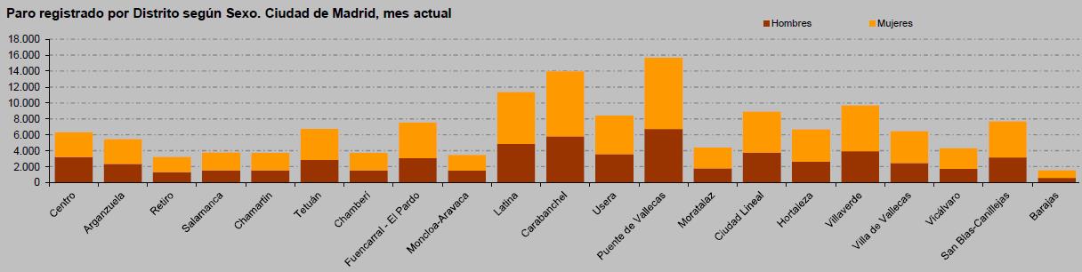 Según los datos publicados por el Ayuntamiento de Madrid, 249 de las personas paradas registradas que viven en el distrito tienen algún tipo de discapacidad y 2.812 son demandantes de empleo de larga duración.