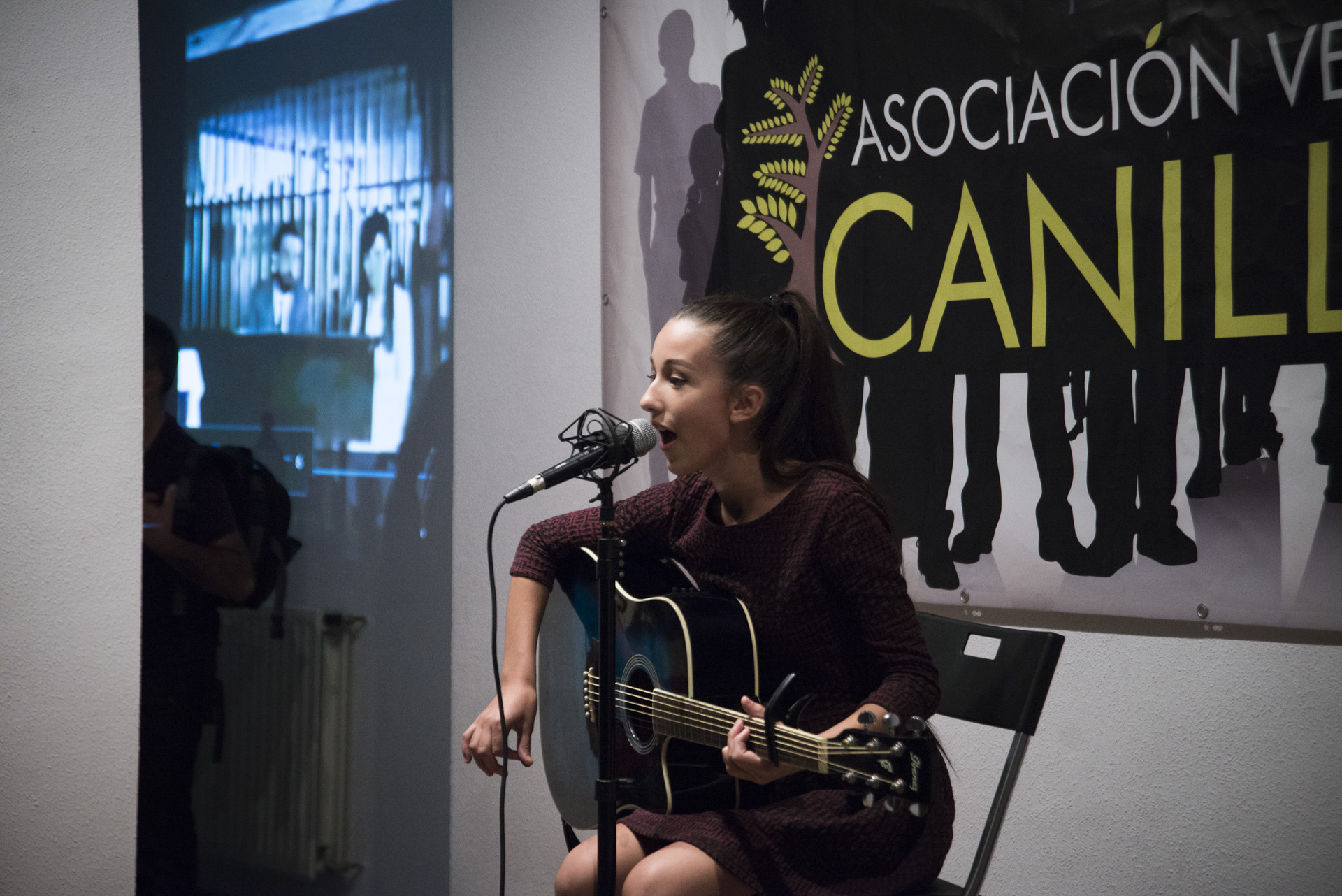 Al acto también acudieron representantes del PP, Ciudadanos y del PSOE, como el concejal Ramón Silva. Los vecinos asistentes comentaban unos con otros, intentando localizar su casa en alguno los tres pósters que decoran las paredes con fotos aéreas del barrio, -cuando se estaba terminando de construir allá por los años cincuenta-, hasta que ese murmullo fue roto cuando una joven vecina con una voz magistral, Georgia Izquierdo, cantó tres maravillosas canciones, que nos dejaron a todos sin palabras.