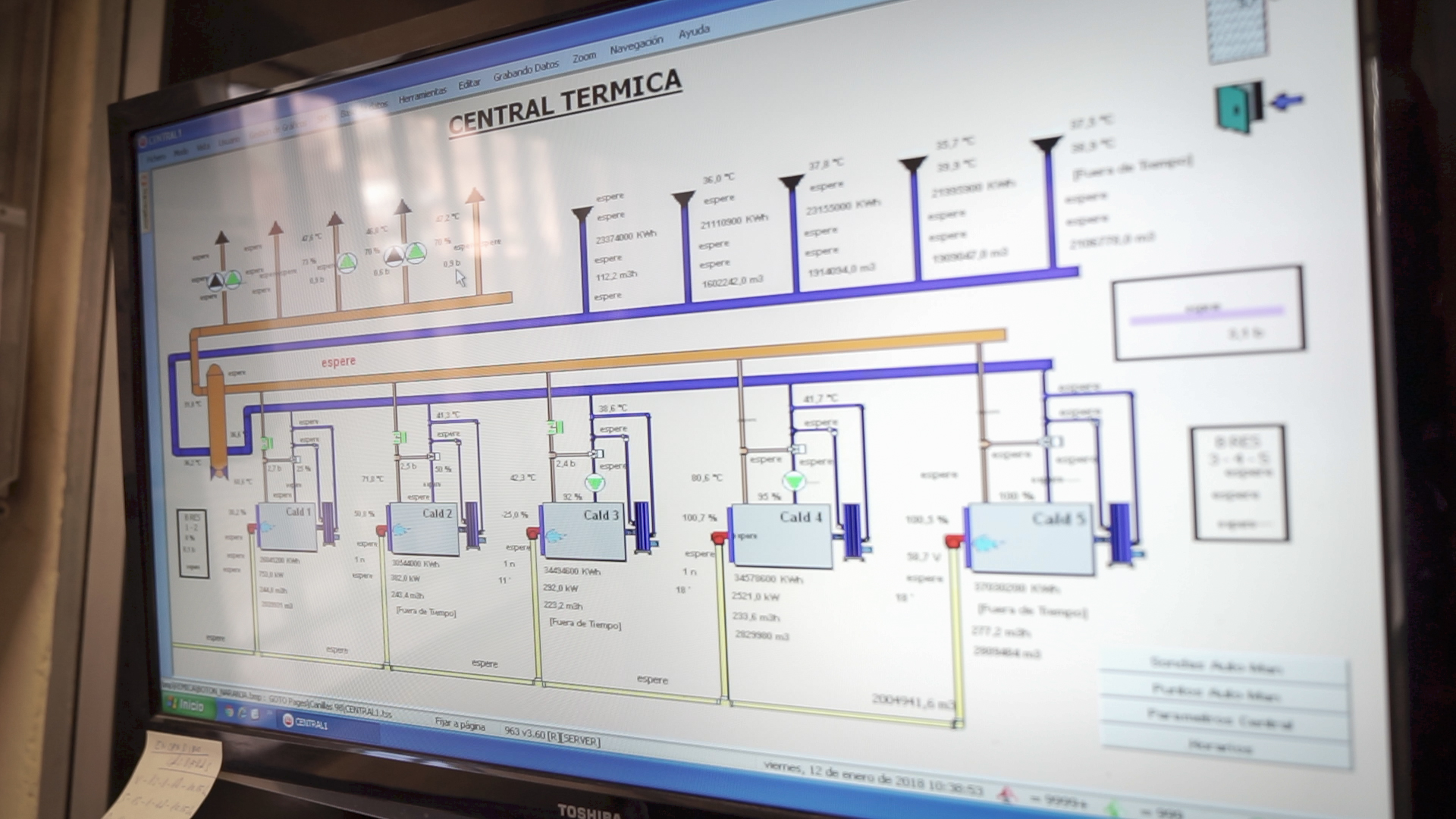 Bajo una explanada de la calle Utrillas, conocida como el ‘parque de las calderas‘, se esconde la sala que calienta el barrio durante invierno. Cinco grandes calderas que producen 25 millones de kilocalorías a la hora, con recuperadores de calor y quemadores de “la mejor tecnología que existe en este momento”, presume Emilio Pizjuán, el responsable de su mantenimiento.