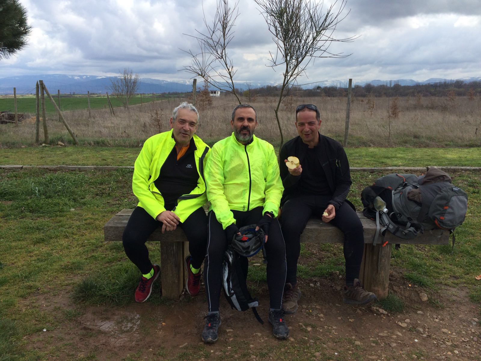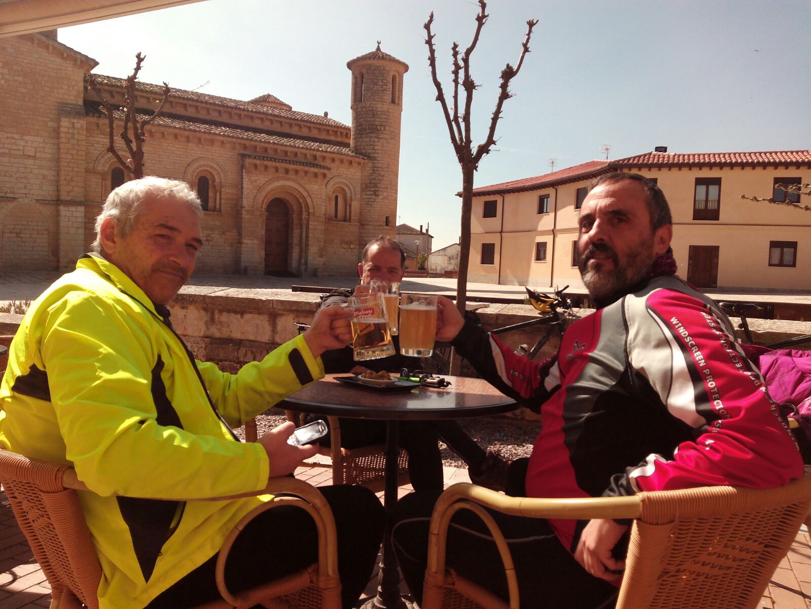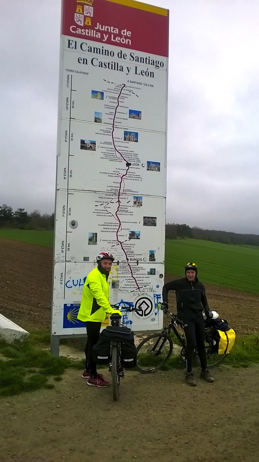 Esta parte de la crónica puede ser ampliada porque aún no había intención de publicar el viaje. Este texto surge a partir de la primera foto y de que José Eduardo escribiera: «Ánimo mañana. Esperamos la crónica y alguna foto». Desde Galicia, Miguel Ángel animaba a completar el camino y mandaba el emoticono del pulpo como recompensa. Palmas, sonrisas y más signos que demostraban que no iban tres.