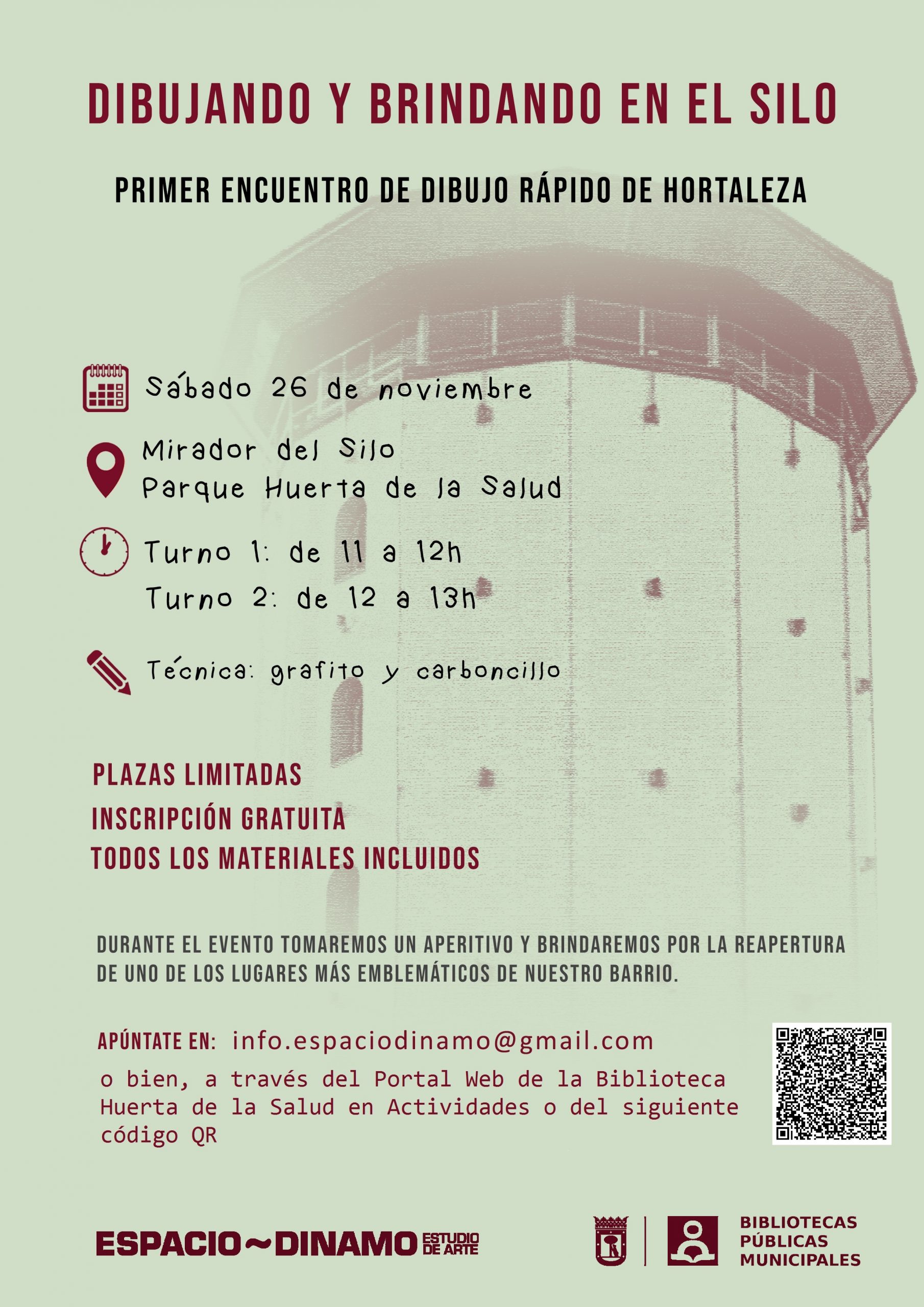 El Espacio Dinamo y la biblioteca pública Huerta de la Salud se unirán este sábado 26 de noviembre para celebrar el primer encuentro de dibujo rápido “Dibujando y brindando en el Silo”, un evento dirigido a los aficionados a la pintura que nace, al tiempo, para homenajear a una construcción que lleva en pie desde 1928 como símbolo de Hortaleza.
