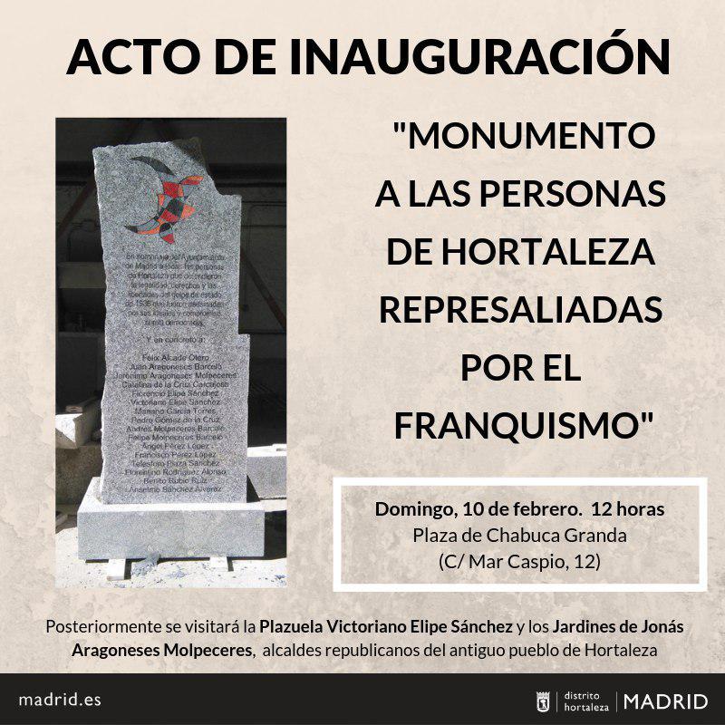 Por ejemplo, Victoriano Elipe Sánchez, fundador de la Agrupación Socialista de Hortaleza y alcalde republicano del municipio, que tras la Guerra Civil fue detenido y condenado a muerte por un tribunal franquista, siendo fusilado en el cementerio de Colmenar Viejo, un 9 de septiembre de 1939, y enterrado en una fosa común. Ningún rincón de su antiguo pueblo le recordaba hasta ahora. Porque la plazoleta de la intersección de la calle Mar de Japón y Mar Amarillo, en el casco viejo de Hortaleza, pasará a llamarse Victoriano Elipe 80 años después de su fusilamiento.
