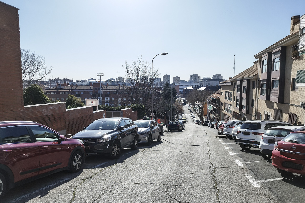 La calle de la Liberación del pueblo de Hortaleza, con Canillas al fondo, en 2025. SARA BLAYA LASANGAN