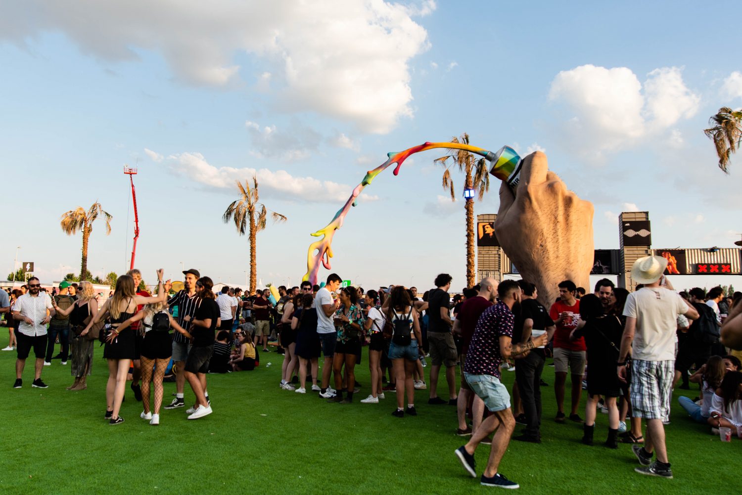 Tras la bochornosa espera, pisar el césped artificial que alfombraba del festival se celebraba como quien alcanza un oasis en el desierto. La alegría duraba lo que se tardaba en buscar alimento o refrigerio: de nuevo largas colas para hidratarse, mientras al otro lado de la barra un ejército de trabajadores batallaba sin parar ante el asedio de los sedientos.