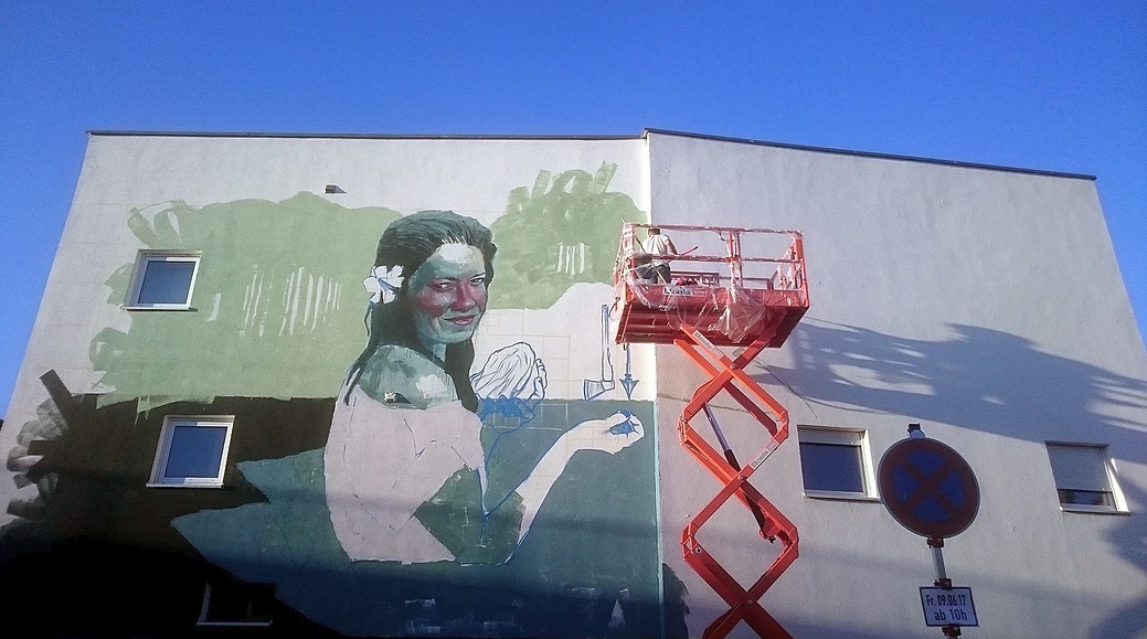 Miss Wiesbaden Dan FerrerDan Ferrer trabajando en un mural en Wiesbaden (Alemania)
