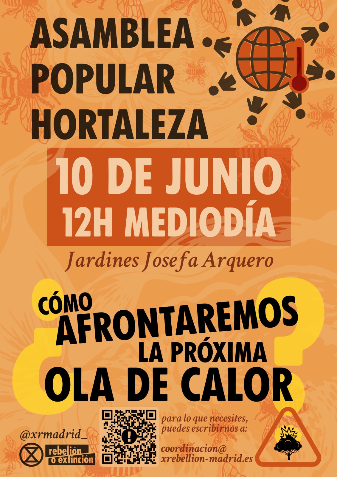 Acude a la Asamblea Popular por el Clima que organiza Rebelión o Extinción Madrid este sábado 10 de junio, a las 12.00 horas, en los Jardines Josefa Arquero (calle Mar Menor).