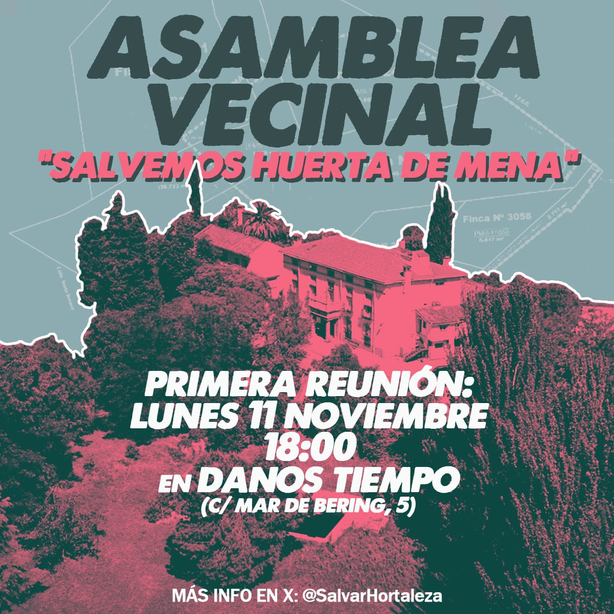 «Por esta razón, el barrio empieza a movilizarse para impedir este proyecto que acabaría con un enclave con siglos de historia, un oasis verde entre autopistas que fue punto de encuentro de la Generación del 27 y tiene un valor cultural excepcional. Si no puedes acudir, pero apoyas esta reivindicación, comparte la convocatoria o firma en esta campaña: ya son más de 5.000 personas la que piden al Ayuntamiento que no permita la desaparición de Huerta de Mena», añade Salva Hortaleza.