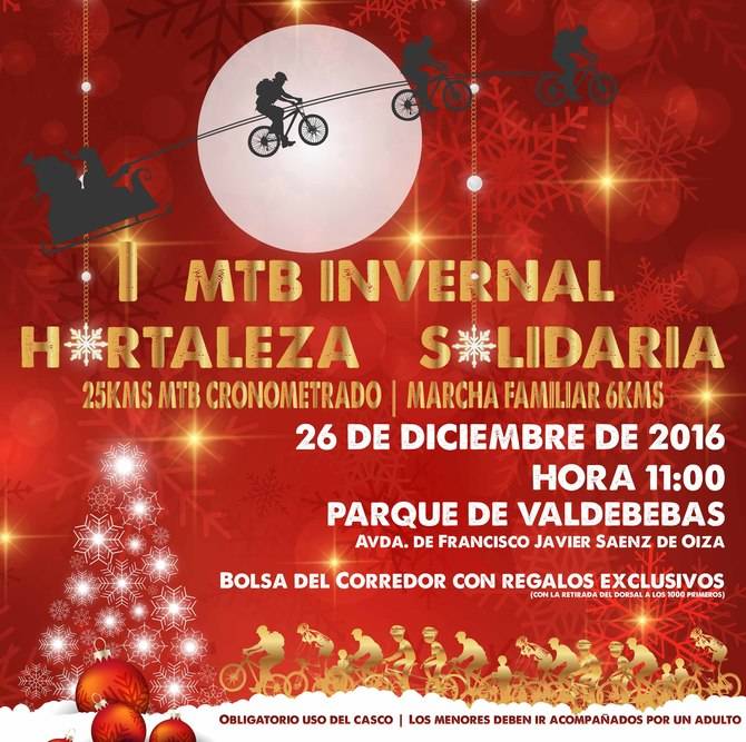 Este lunes 26 de diciembre, el barrio de Valdebebas acoge la primera edición de la carrera de mountain bike Hortaleza Solidaria, una prueba con dos modalidades (25 kilómetros cronometrados o 6 kilómetros de marcha) con salida en la calle Francisco Javier de Oiza a las 11 horas.