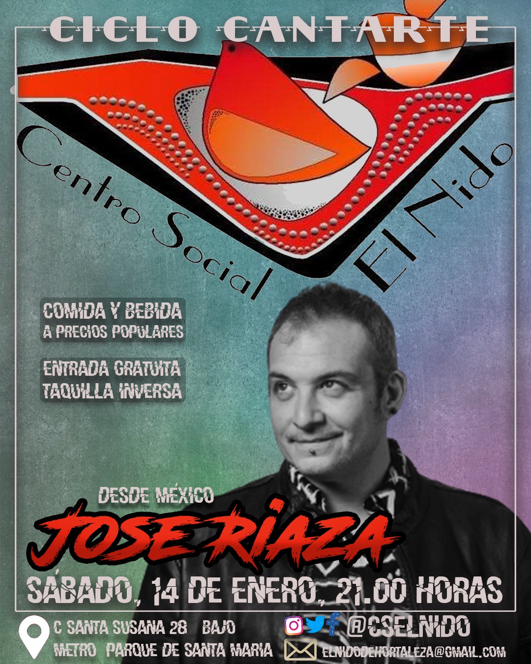 El Centro Social El Nido presenta este fin de semana una nueva sesión del Ciclo Cantarte, que tendrá lugar en su local de la calle Santa Susana, número 28 bajo.