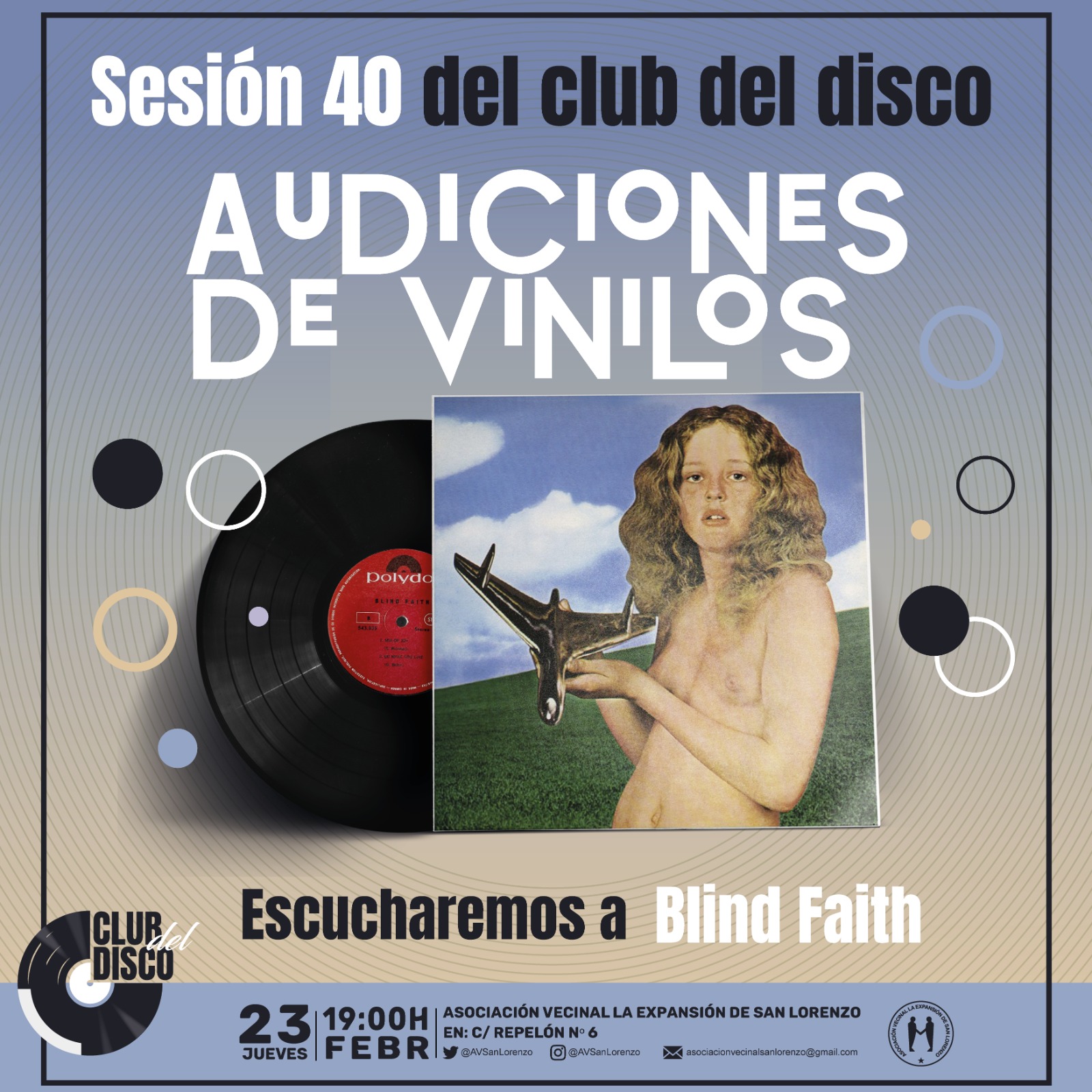El Club del Disco de la asociación de vecinos La Expansión de San Lorenzo celebra una nueva sesión este jueves 23 de febrero, a las 19.00 horas, con una pinchada del disco de Blind Faith.