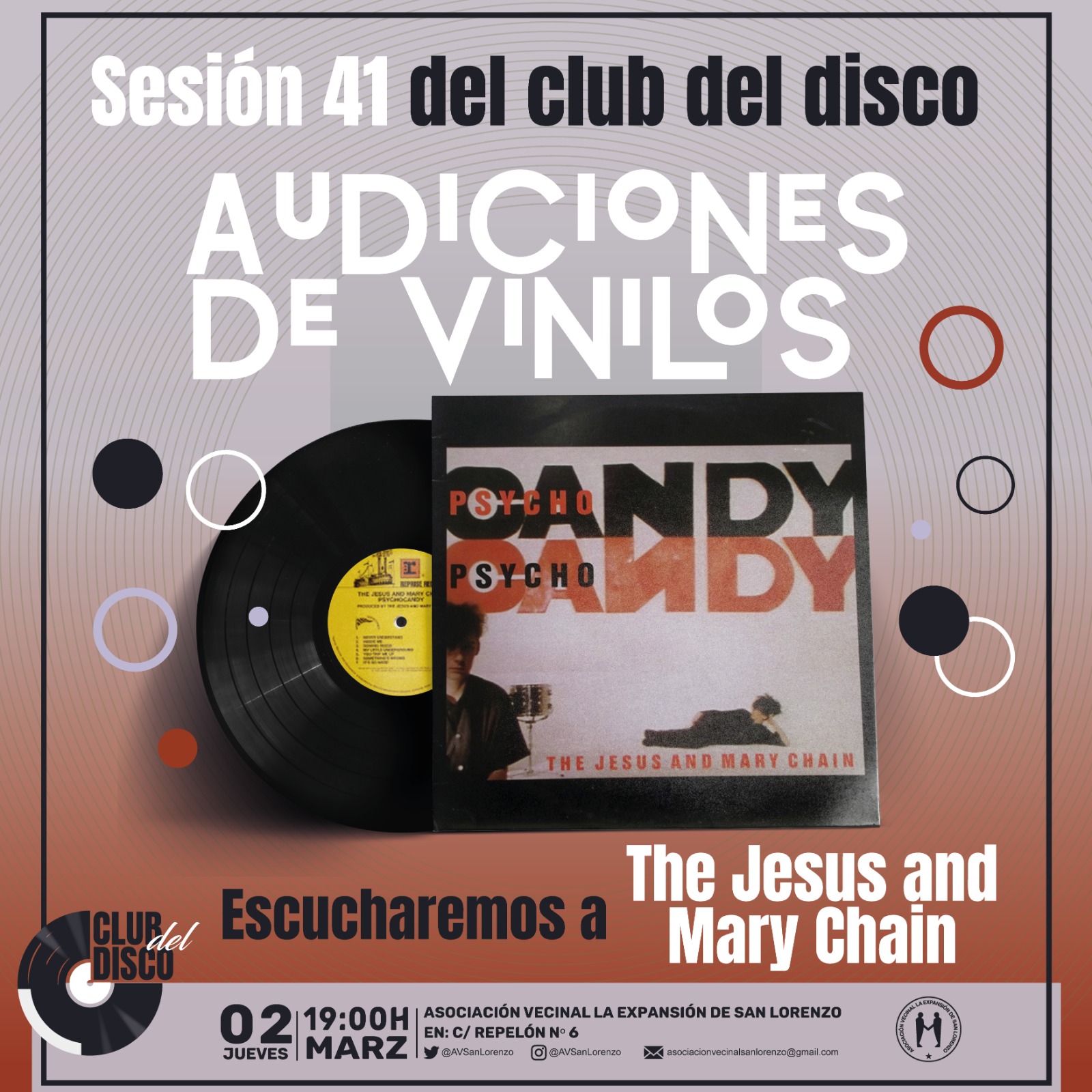 El Club del Disco de la asociación de vecinos La Expansión de San Lorenzo celebra una nueva sesión este jueves 2 de marzo, a las 19.00 horas, con una pinchada de la banda escocesa The Jesus and Mary Chain.