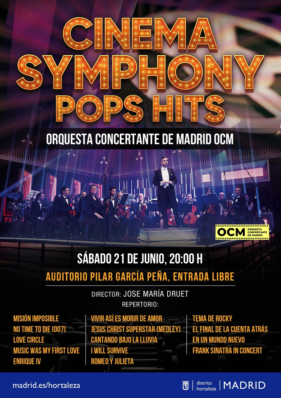 El sábado 21 de junio a las 20.00 horas, en conmemoración del Día Europeo de la Música, se celebra el concierto gratuito Cinema Simphony Pops Hits de la Orquesta Concertante de Madrid en el auditorio Pilar García Peña (Carretera de Canillas, 1).