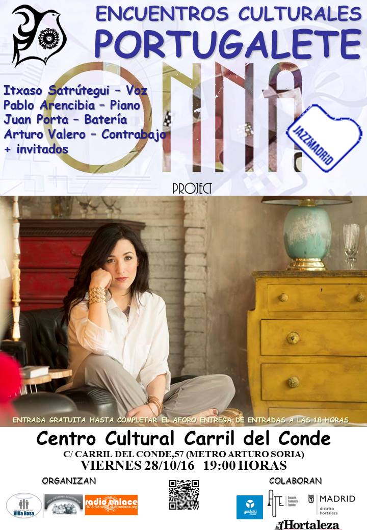 Este viernes 28 de octubre vuelven los Encuentros Culturales Portugalete, una iniciativa que desde hace más de una década trae el mejor jazz en directo a Hortaleza todos los meses. El segundo concierto de la temporada, a las 19 horas en el centro cultural Carril del Conde con entrada gratuita, estará protagonizado por Onna Proyect.