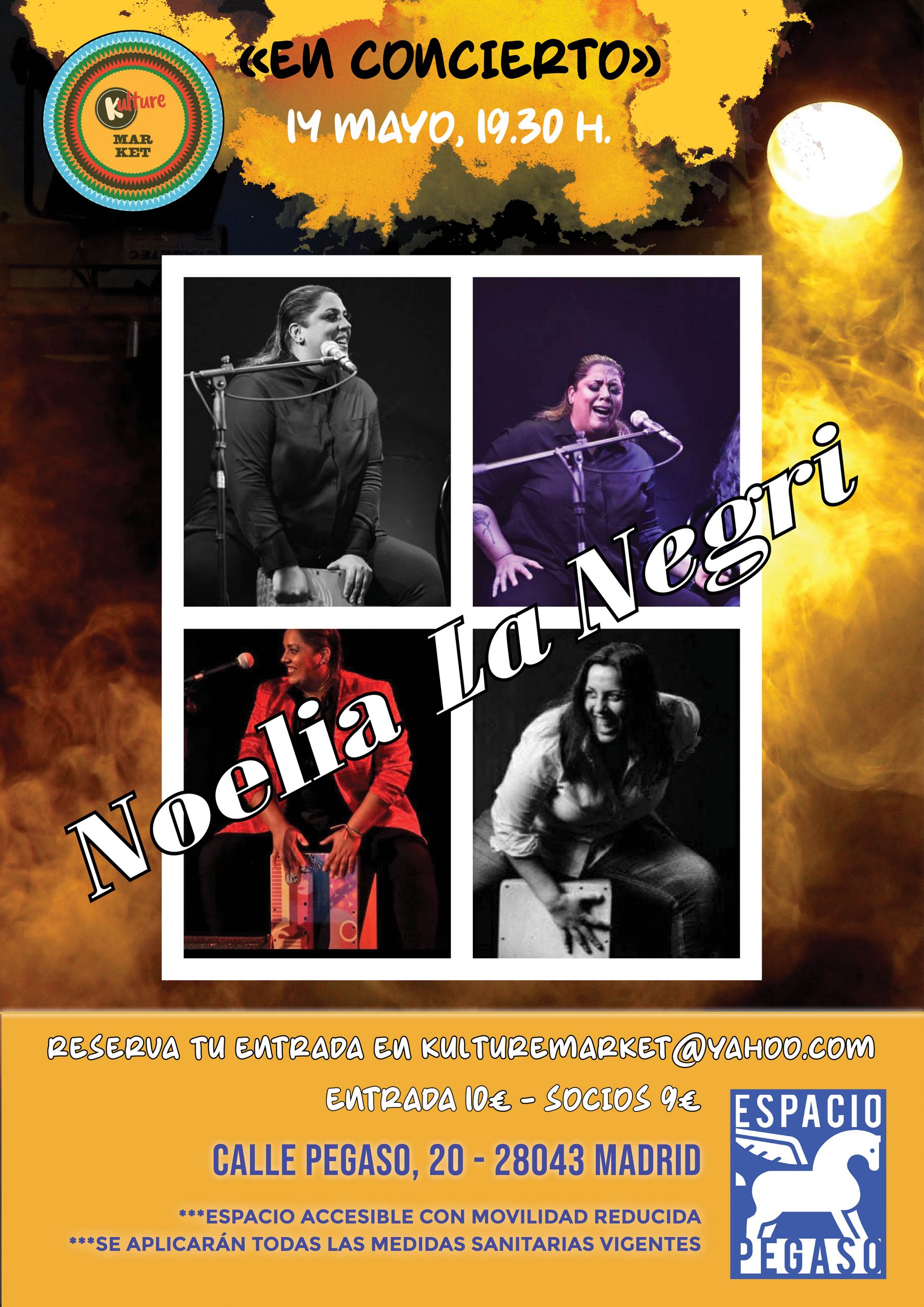 El sábado 14 de mayo, a las 19.30 horas, la asociación Kulture Market organiza un nuevo espectáculo de la segunda temporada de actuaciones que tiene programada en el Espacio Pegaso (Pegaso, 20), en esta ocasión, los agitadores culturales nos proponen una cita con el flamenco de Noelia La Negri.
