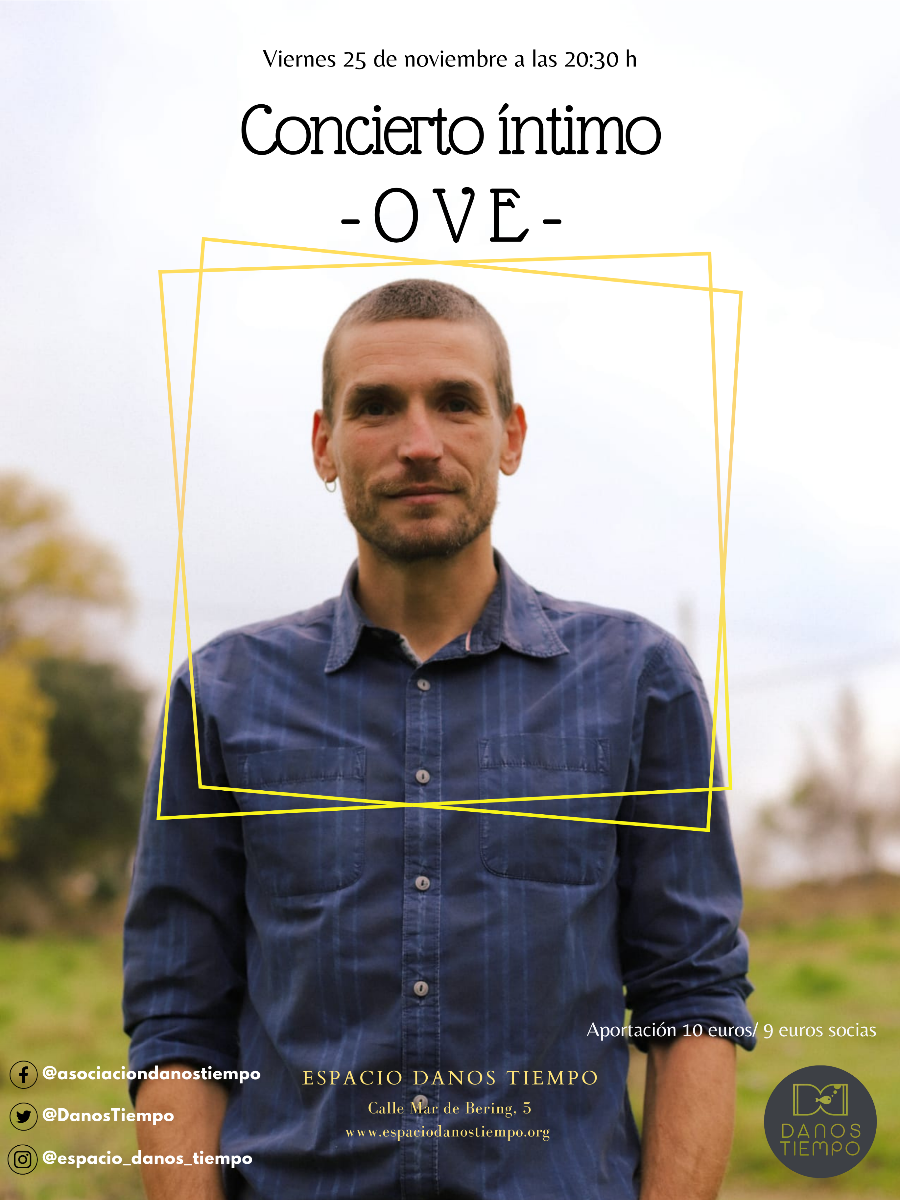 El viernes 25 de noviembre, vuelven a celebrarse de nuevo los conciertos íntimos en el local del Espacio Danos Tiempo (calle Mar de Bering, 5). En esta ocasión, a partir de las 20.30 horas, podrá disfrutarse de la música en directo de OVE.