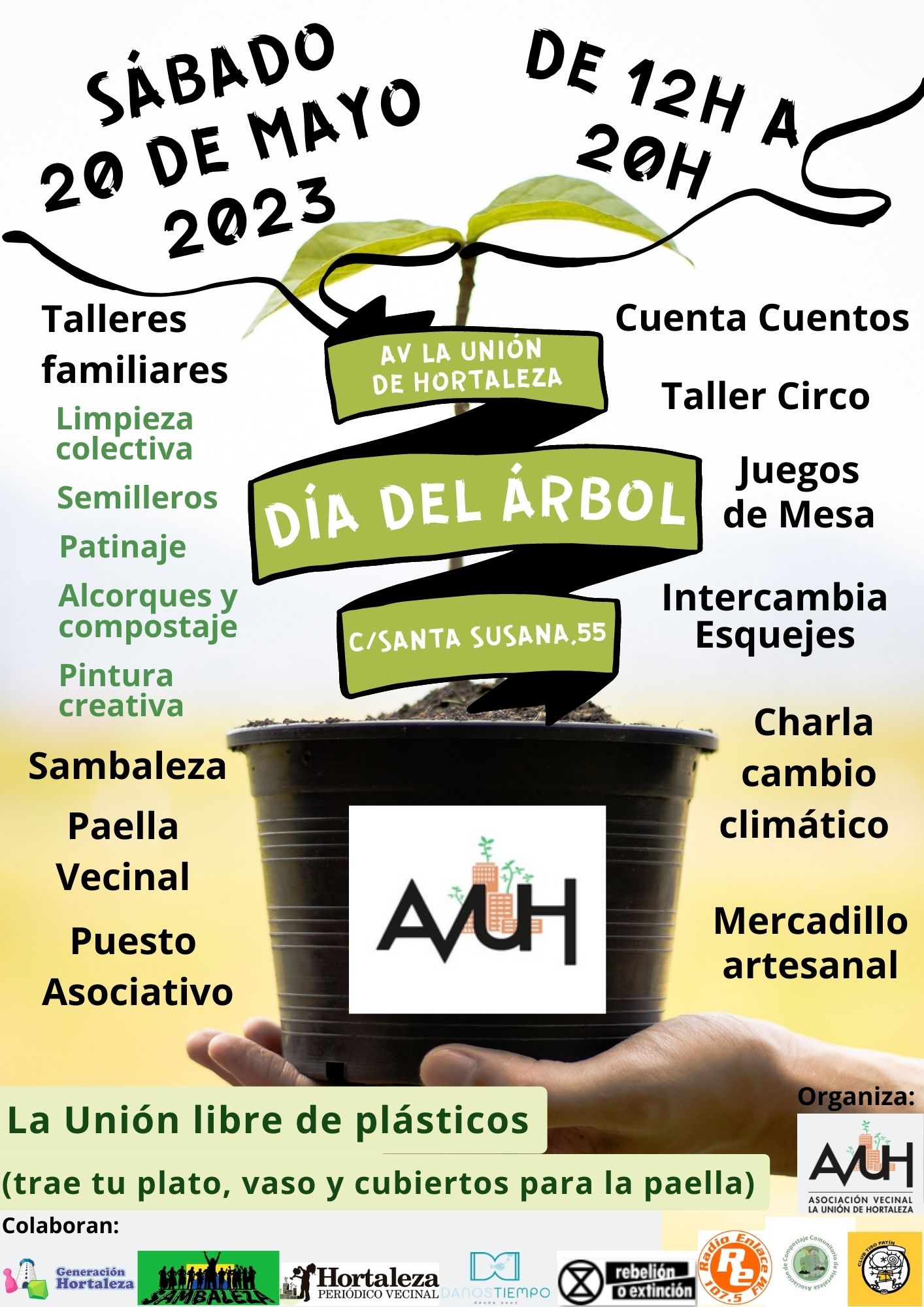 El Día del Árbol 2023 se realiza gracias a todas aquellas personas, colectivos y entidades que colaboran: Sambaleza, Asociación Compostaje Comunitario de Hortaleza, Club Tiso Patín, Generación Hortaleza, Extinction Rebellion Hortaleza, CEIP Filosofo Séneca y del IES Arturo Soria, Espacio Danos Tiempo, Radio Enlace, Hortaleza Periódico Vecinal y familias de la La Unión de Hortaleza.