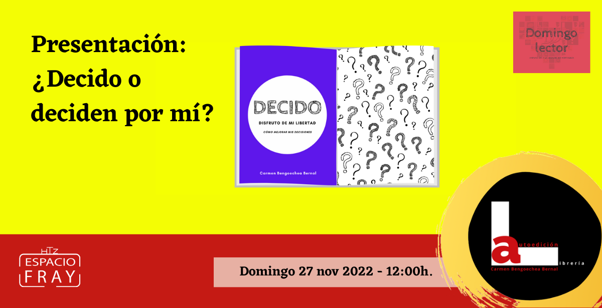 Este domingo 27 de noviembre a las 12.00 horas, se celebra un nuevo domingo lector en el Espacio Fray (calle Alfacar, 7) con la presentación del libro Decido de la escritora hortalina Carmen Bengoechea Bernal.