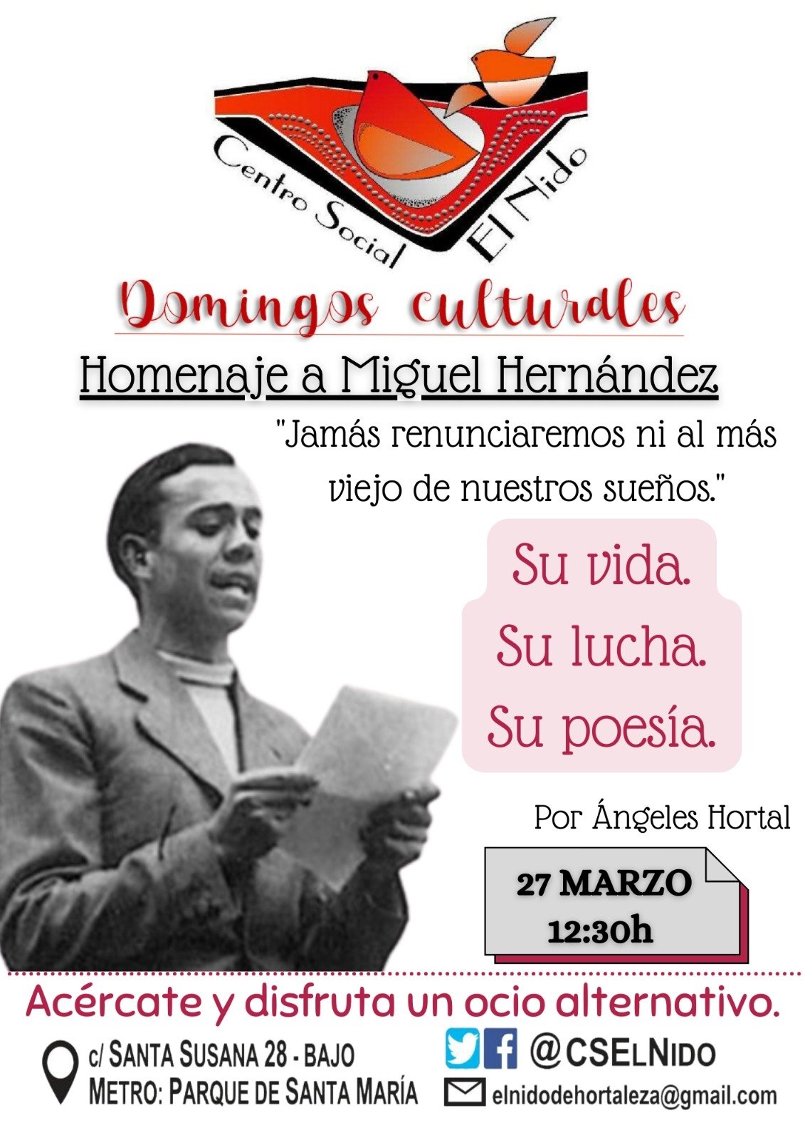 Domingos culturales en el CS El Nido: homenaje a Miguel Hernández