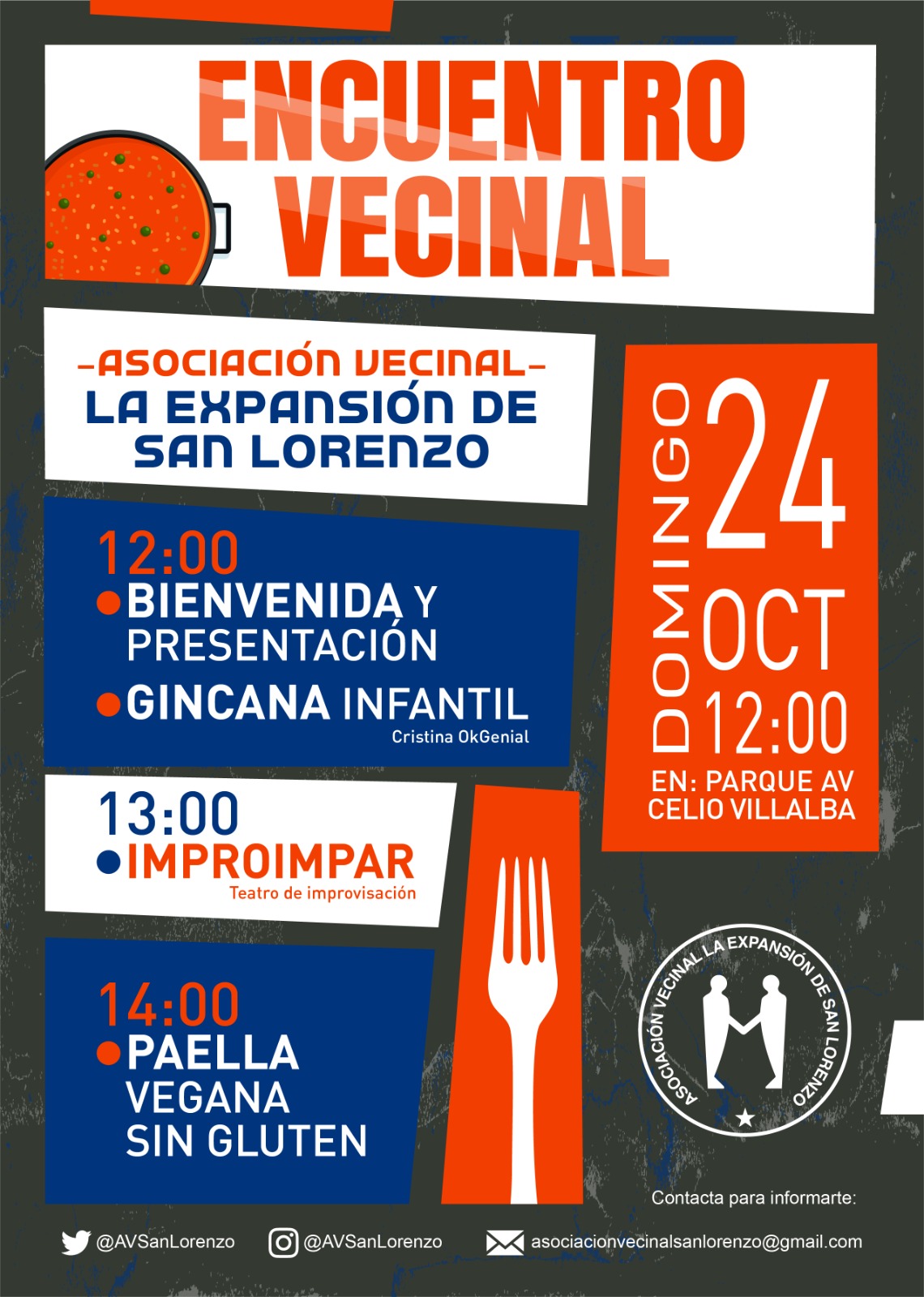 El domingo 24 de octubre a partir de las 12.00 horas, la asociación vecinal La Expansión de San Lorenzo celebra un encuentro vecinal en el parque de la avenida Celio Villalba.