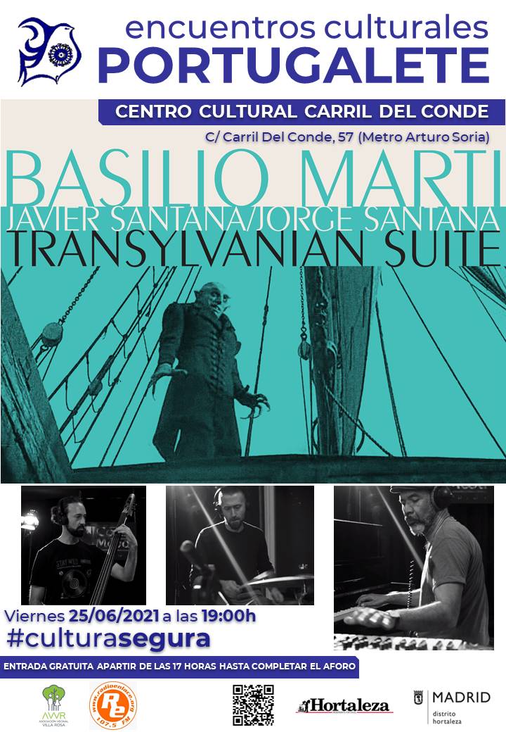 El viernes 25 de junio a las 19.00 horas, podrá disfrutarse con el concierto de BMTrío, proyecto personal del teclista Basilio Martí que presenta su último disco, Transylvanian suite, acompañado de Javier Santana al contrabajo y de Jorge Santana a la batería.