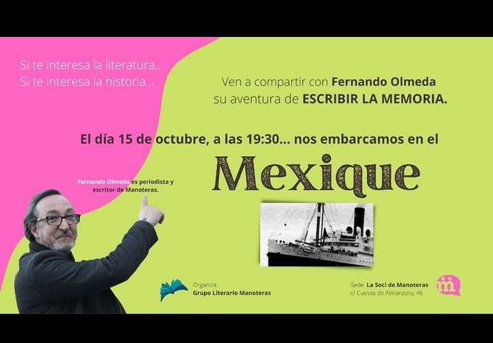 El sábado 15 de octubre a las 19.30 horas, el periodista, escritor y director de documentales Fernando Olmeda, oriundo de Hortaleza, visita la Soci de Manoteras (calle Cuevas de Almanzora, 46) para compartir su experiencia como autor de ensayos y novelas al escribir la memoria.