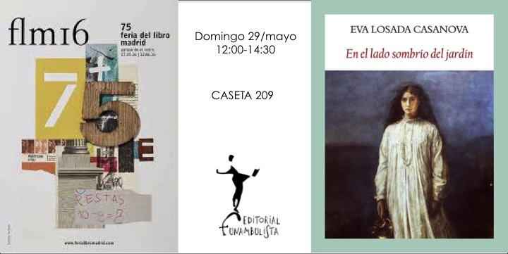 La 75º Feria del Libro de Madrid abre sus casetas desde el viernes 27 de mayo al domingo 12 de junio. A esta cita acudirá, junto otros muchos escitores, Eva Losada Casanova, una de las nuevas firmas habituales de Hortaleza Periódico Vecinal, a quien se podrá encontrar en la caseta 209 de Editorial Funambulista el domingo 29 de mayo de 12.00 a 14.30 y el domingo 5 de junio de 17.00 a 19.00 horas.