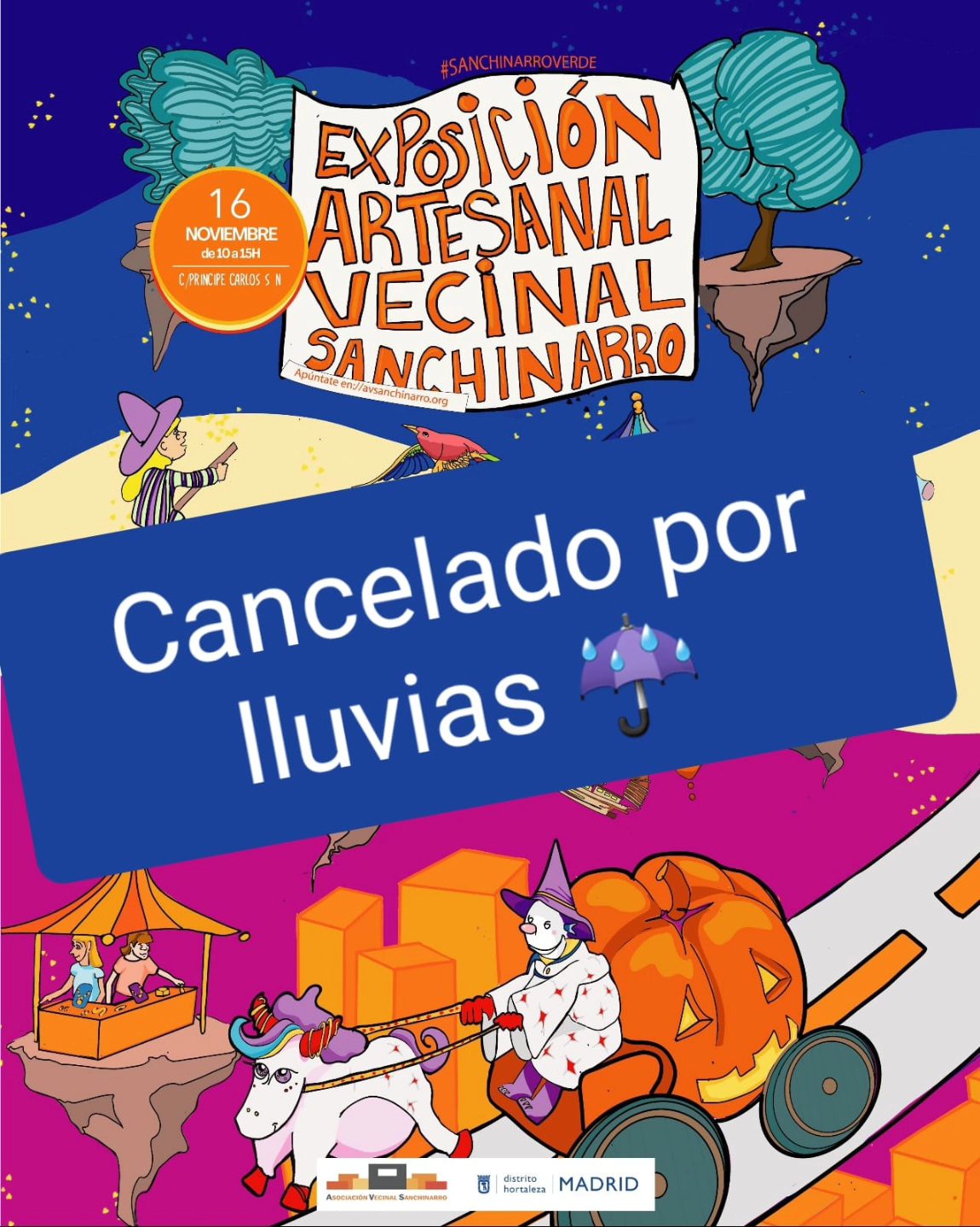 CANDELADO POR LLUVIAS: El domingo 16 de noviembre de 10.00 a 15.00 horas, se celebra la en Sanchinarro organizada por la asociación de vecinos del barrio en la calle Príncipe Carlos, con más de 60 puestos que traen: artesanía, complementos, juguetes, decoración, ropa y libros, entre otros muchos artículos.