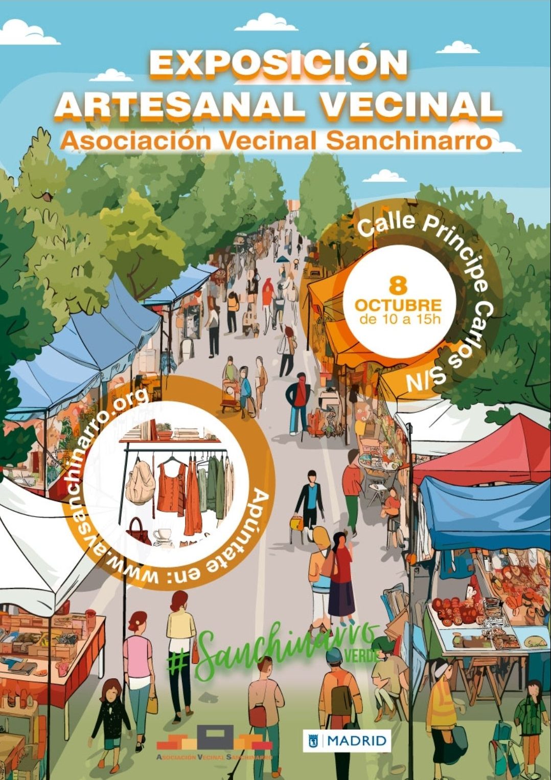 Tras el parón vacacional, el domingo 8 de octubre de 10.00 a 15.00 horas, se celebra una nueva exposición artesanal vecinal en Sanchinarro organizada por la asociación de vecinos del barrio en la calle Príncipe Carlos, con más de 30 puestos que traen: artesanía, complementos, juguetes, decoración, ropa y libros, entre otros muchos artículos.