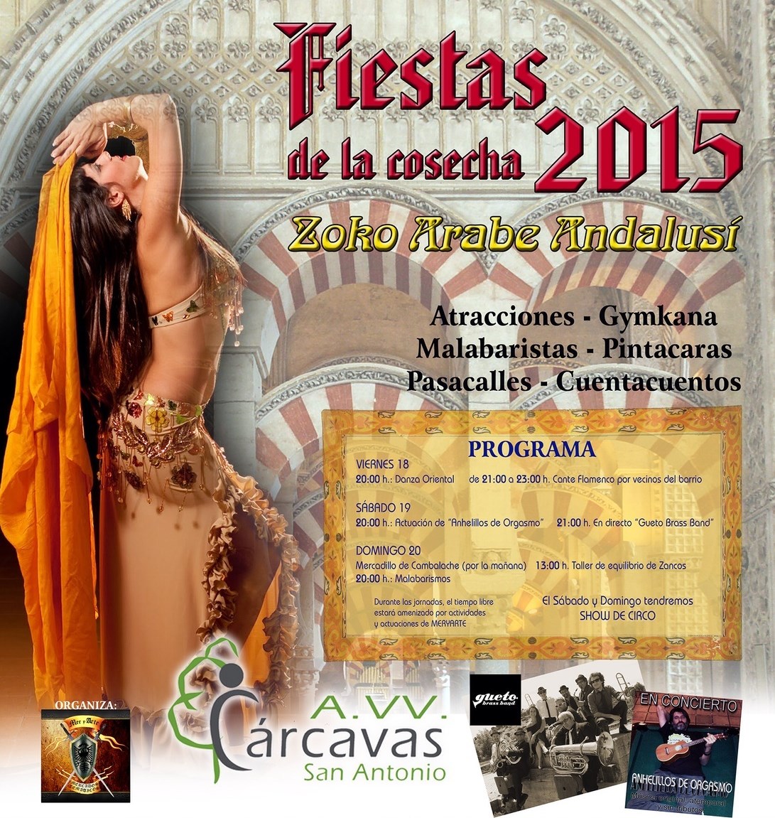El barrio de Las Cárcavas celebra los días 18, 19 y 20 de septiembre sus fiestas de la cosecha con la instalación de un mercado ‘árabe-andalusí’ y atracciones de feria en la plaza de la asociación, situada en la avenida Maruja Mallo, donde también se celebrarán actividades infantiles y actuaciones musicales.