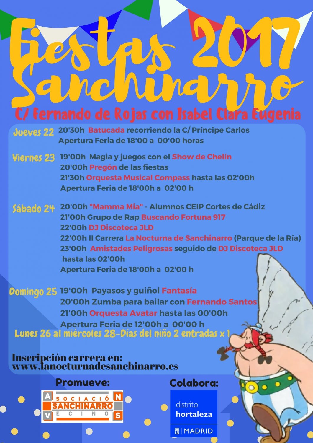 El sábado 24 tendrá el mismo programa hasta la actuación infantil. A las 21 horas, habrá un DJ, con un intermedio para la actuación a las 23 horas de Amistades Peligrosas, que terminará con la II Carrera Nocturna de Sanchinarro.