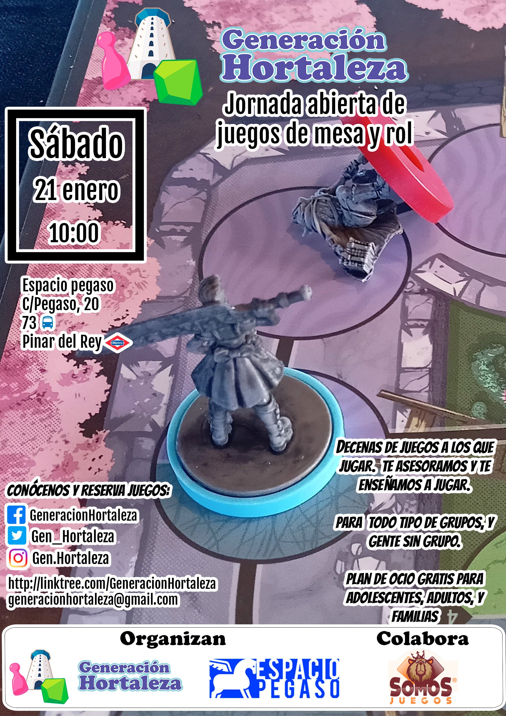 El sábado 21 de enero, el club Generación Hortaleza, en colaboración con Somos Juegos, organiza una nueva jornada abierta de juegos de mesa y rol en el Espacio Pegaso (calle Pegaso, 20), en esta ocasión, será una sesión matutina que comenzará a las 10.00 horas.