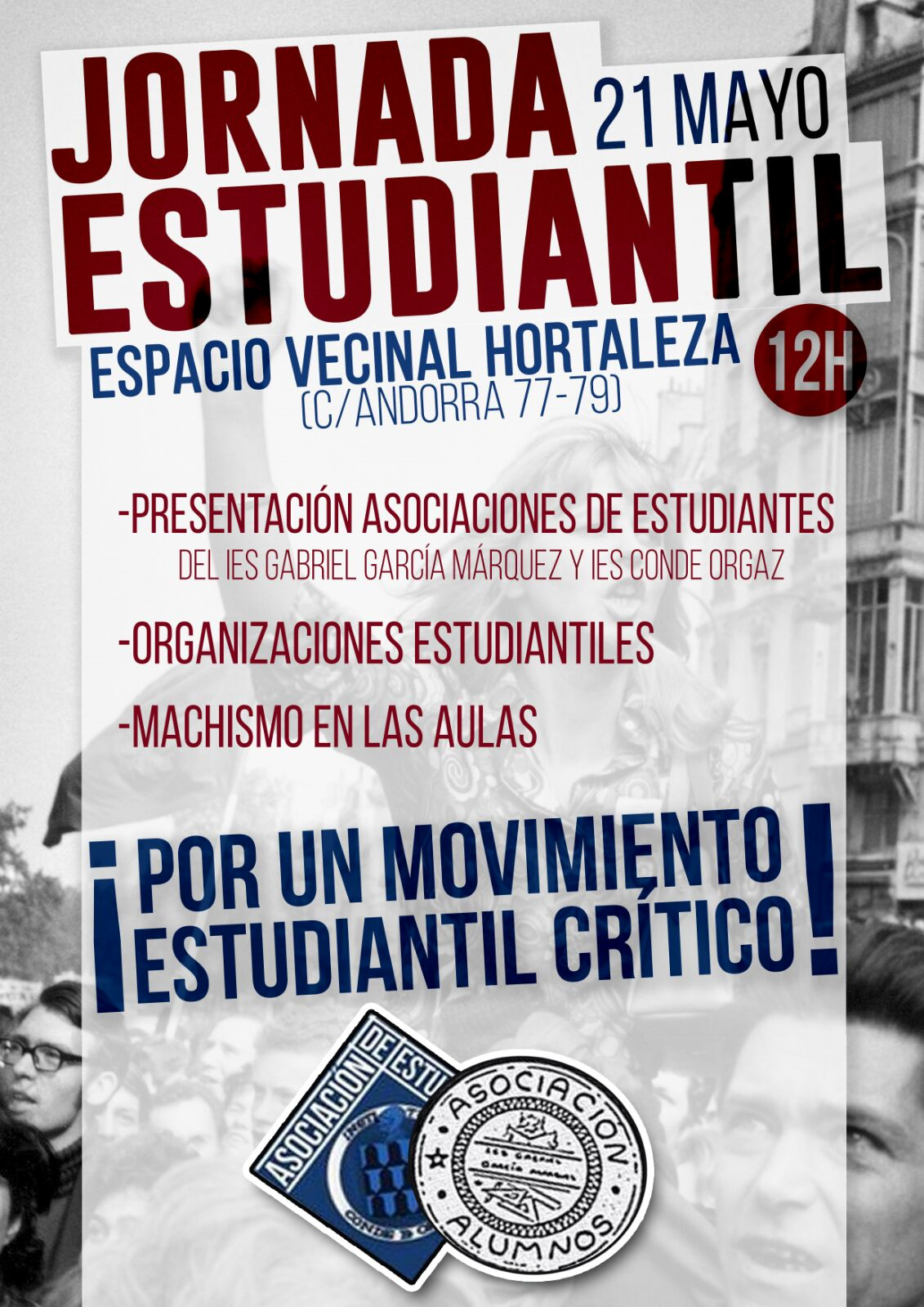 Este domingo 21 de mayo, a las 12 horas, el antiguo colegio Pedro de Alvarado vuelve a abrir sus puertas para reivindicar que albergue el proyecto de Espacio Vecinal de Hortaleza con una jornada estudiantil donde se presentarán las asociaciones de estudiantes de los institutos públicos Conde de Orgaz y Gabriel García Márquez de nuestro distrito.