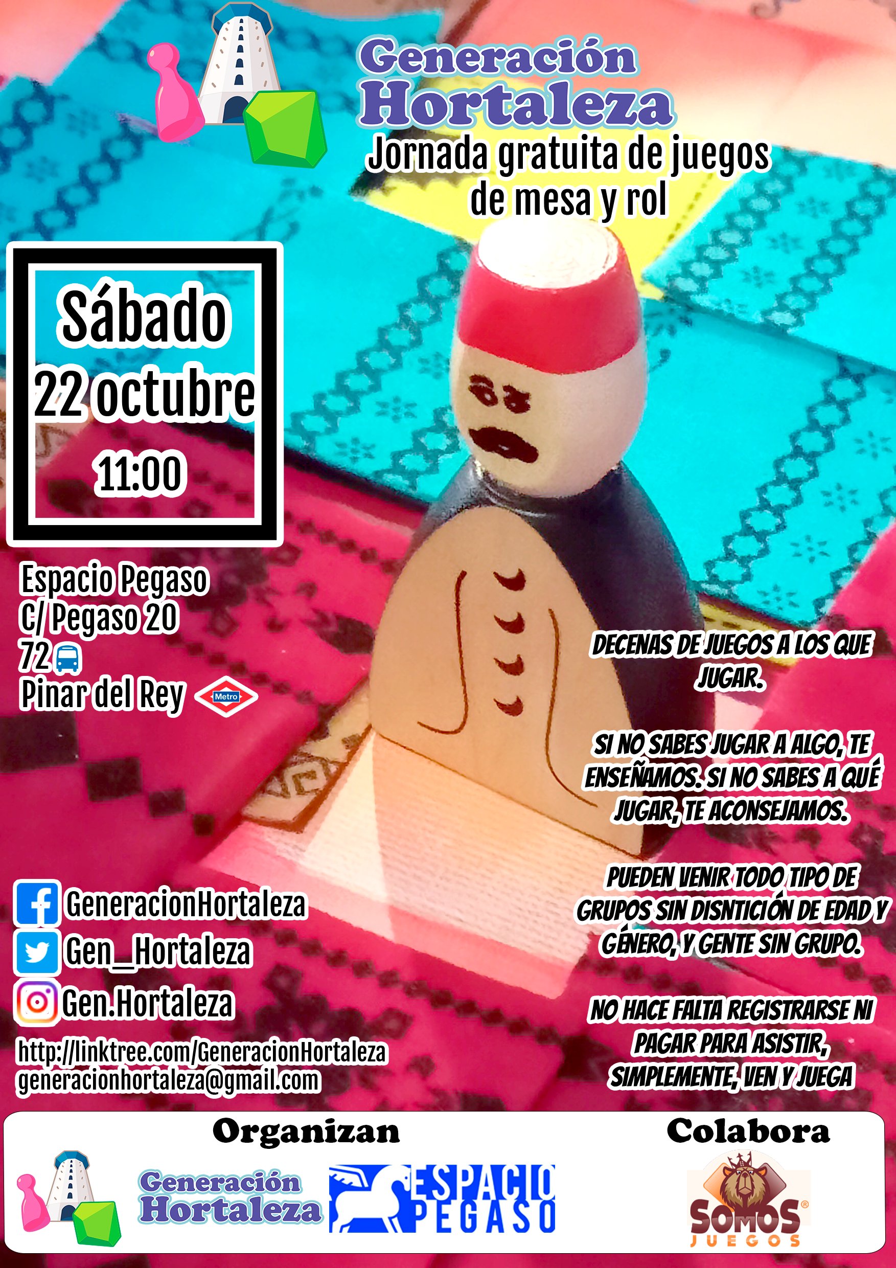 El sábado 22 de octubre a las 11.00 horas, nueva jornada gratuita de juegos de mesa y rol con Generación Hortaleza, en colaboración con Somos Juegos, en el Espacio Pegaso (calle Pegaso, 20).