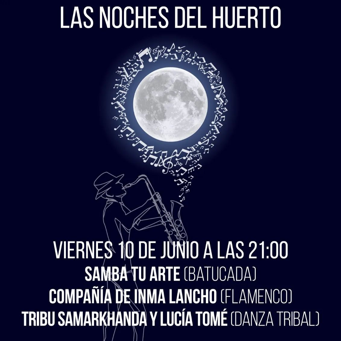 El viernes 10 de junio, a partir de las 21.00 horas, continúa el ciclo de actuaciones al aire libre Las Noches del Huerto de Manoteras con la batucada de Samba tu Arte, la actuación de baile flamenco de la compañía de Inma Lancho y la danza tribal de la Tribu Samarkhanda y Lucía Tomé (en el teatro del Huerto Comunitario de Manoteras (calles Cuevas de Almanzora con Roquetas de Mar).