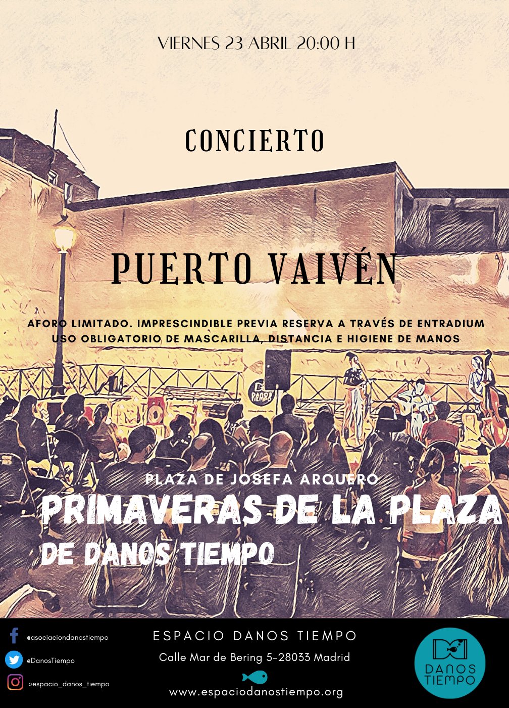 El viernes 23 de abril, a partir de las 20.00 horas, el Espacio Danos Tiempo continúa con el ciclo de espectáculos al aire libre Las Primaveras de la Plaza, organizadas en los Jardines Josefa Arquero Hernández en el caso antiguo del pueblo de Hortaleza, y demostrando que se puede disfrutar de una cultura segura.