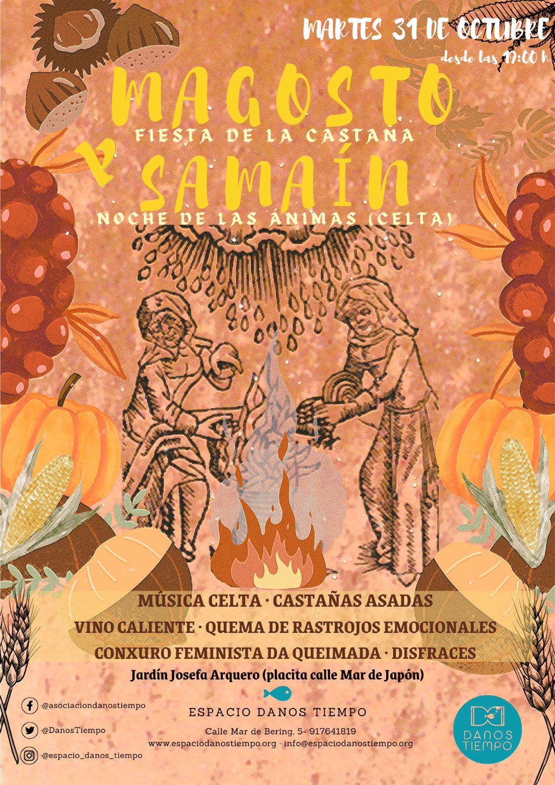El martes 31 de octubre, a partir de las 19.00 horas, el Espacio Danos Tiempo vuelve a organizar uno de los eventos favoritos del distrito celebrando el Magosto y Samaín (Fiesta de la Castaña y Halloween celta, respectivamente) como en otras ocasiones en los Jardines de Josefa Arquero.