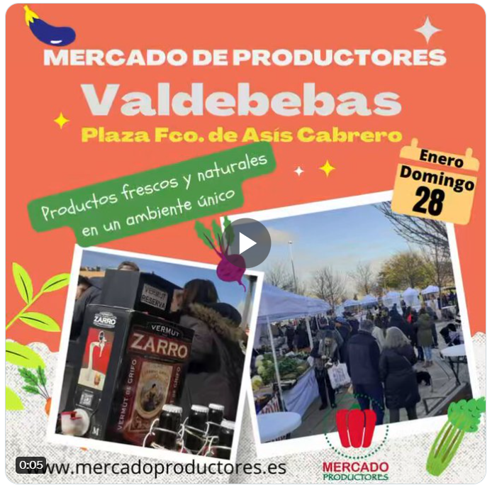 El domingo 28 de enero desde las 10.00 hasta las 16.00 horas, se celebra una nueva edición del Mercado de Productores de Valdebebas, que se ubica los cuartos domingos de cada mes en la plaza de Francisco de Asís Cabrero, junto a la Avda. de Juan Antonio Samaranch.