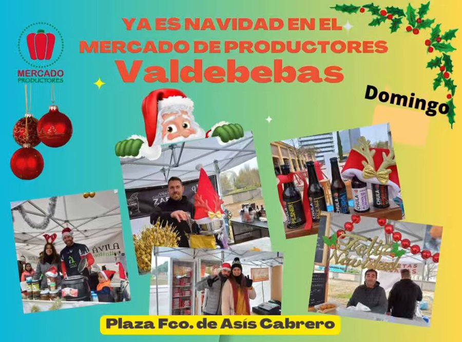 El domingo 22 de diciembre desde las 10.00 hasta las 16.00 horas, se celebra el Mercado de Productores de Valdebebas diciembre 2024, que se ubica los cuartos domingos de cada mes en la plaza de Francisco de Asís Cabrero, junto a la Avda. de Juan Antonio Samaranch.