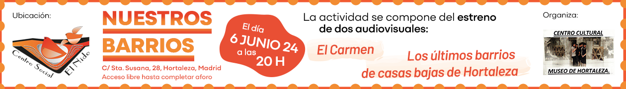 - Etiquetas del Evento:Centro Cultural Museo de Hortaleza, Centro Social El Nido, El Carmen, José I. Fernández, Los últimos barrios de casa bajas de Hortaleza, Nuestros Barrios