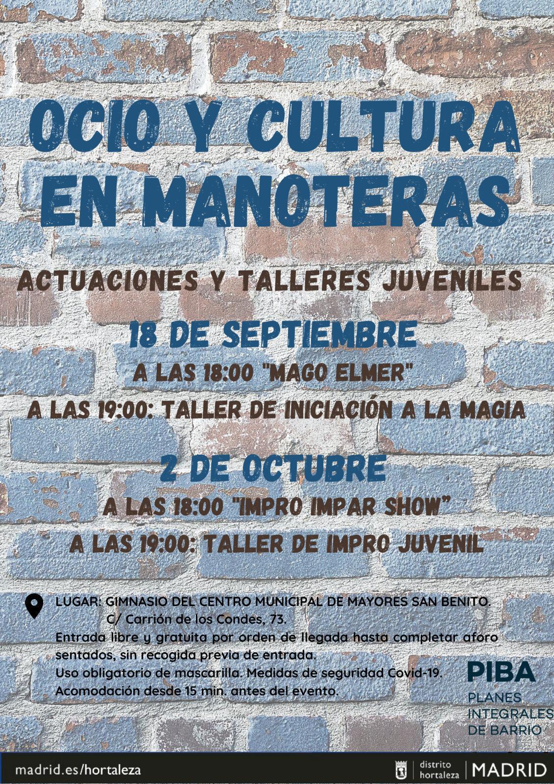 El viernes 18 de septiembre se celebra una nueva jornada de ocio y cultura en Manoteras con actuaciones y talleres juveniles en el gimnasio del centro municipal de mayores San Benito (Carrión de los Condes, 73).