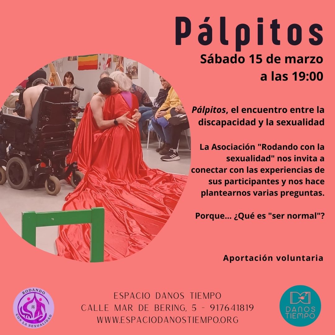 El sábado 15 de marzo a las 19.00 horas, la asociación Rodando con la Sexualidad nos invita a nos invita a conectar con las experiencias de sus participantes y nos hace plantearnos preguntas como qué es «ser normal» en la performance Pálpitos en el Espacio Danos Tiempo (calle Mar de Bering, 5).