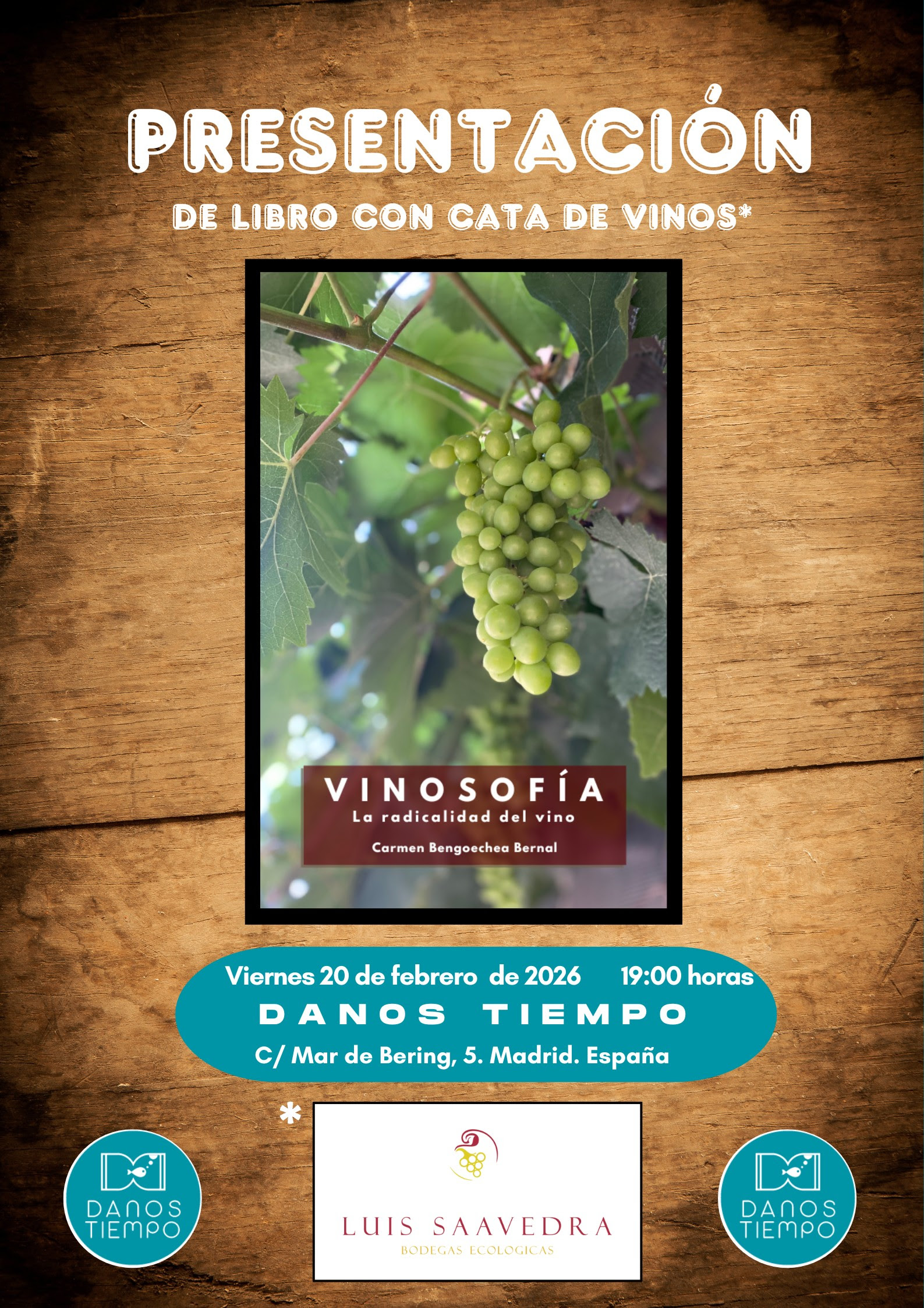 El viernes 20 de febrero a las 19.00 horas, el Espacio Danos Tiempo (calle Mar de Bering, 5) acoge la presentación del libro Vinosofía. La radicalidad del vino, de la filósofa hortalina Carmen Bengoechea Bernal, una propuesta que invita a pensar el vino más allá del consumo.
