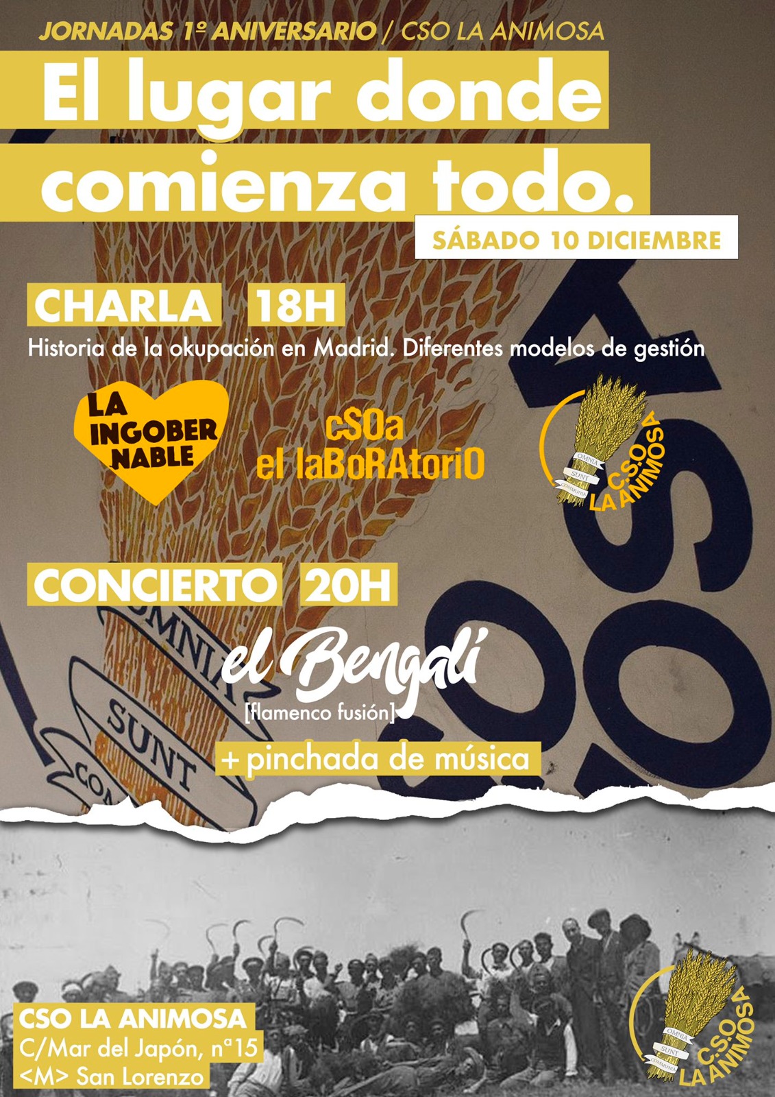 El sábado 10 de diciembre, el centro social okupado La Animosa cumple su primer aniversario y el vecindario está invitado a pasarse por el centro social (calle Mar del Japón, 15) para celebrarlo.