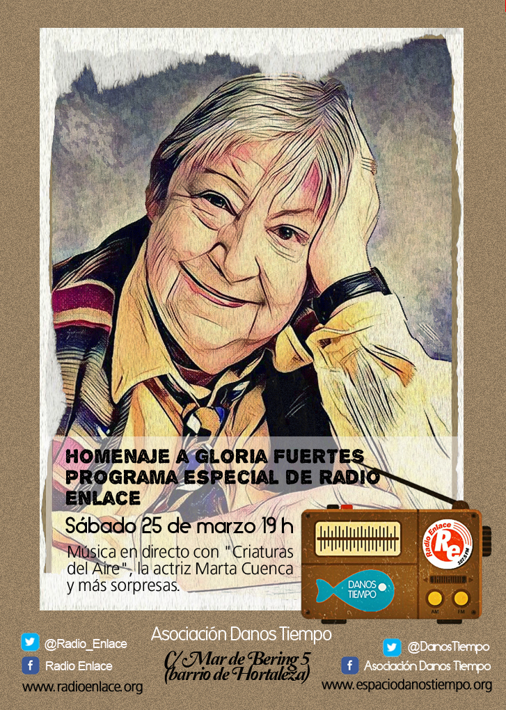 Las asociaciones culturales Danos Tiempo y Radio Enlace se suman a los homenajes a Gloria Fuertes que se están realizando en el centenario de su nacimiento con la realización de un programa especial.