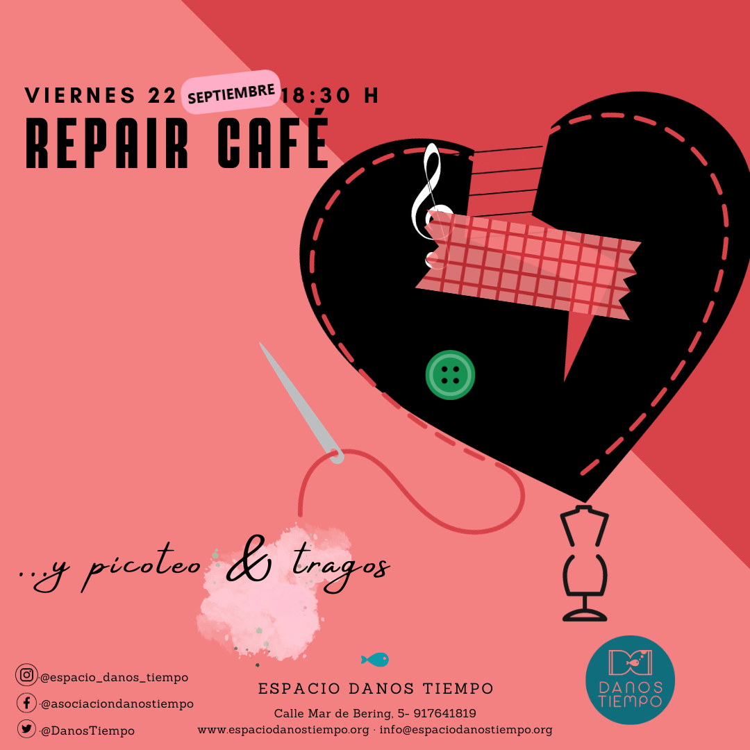 El viernes 22 de septiembre a las 18.30 horas, se celebra una nueva sesión de Repair Café y picoteo en el Espacio Danos Tiempo (calle Mar de Bering, 5), una iniciativa que persigue alargar la vida de los objetos que tenemos (aparatos, muebles, juguetes, ropa, bicicletas, vajillas, electrodomésticos…) pudiendo arreglarlos o repararlos con la ayuda de personas expertas en su reparación.