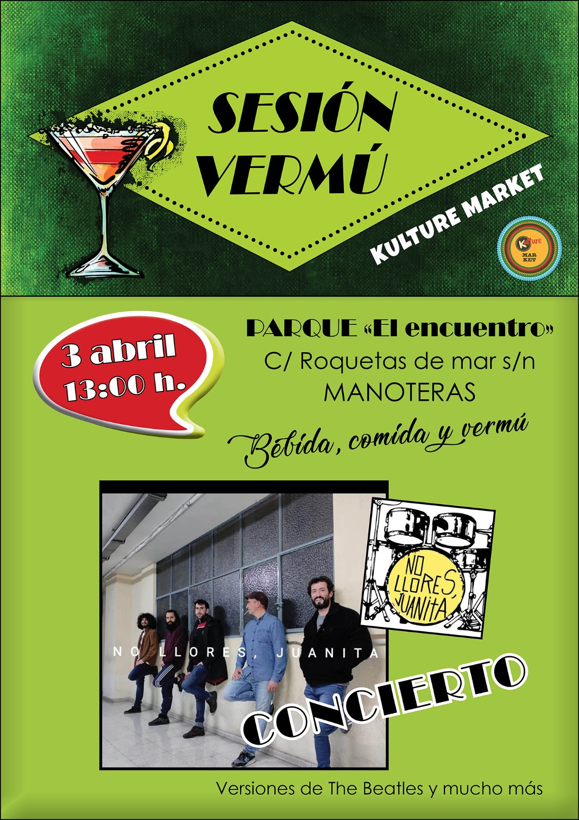 El domingo 3 de abril a las 13.00 horas, la asociación Kulture Market organiza una sesión vermú en el parque de El Encuentro (Roquetas de Mar, s/n) en el barrio de Manoteras.