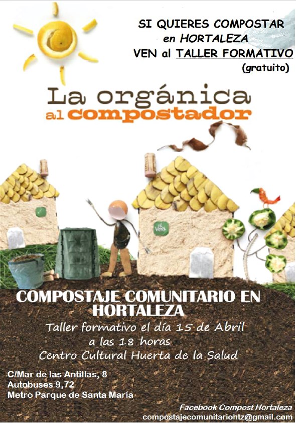 Si quieres participar en el Proyecto de Compostaje Comunitario en Hortaleza y ser una de las personas de Hortaleza que forme parte de esta prueba piloto de reciclaje de residuos orgánicos, acude al taller formativo gratuito de compostaje comunitario el viernes 15 de abril, a las 18.00 horas, en el centro cultural Huerta de la Salud (Mar de las Antillas,8).